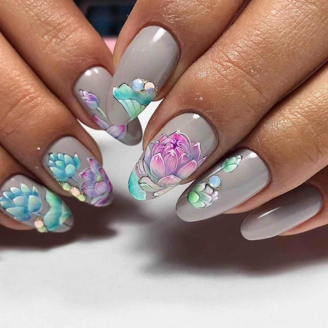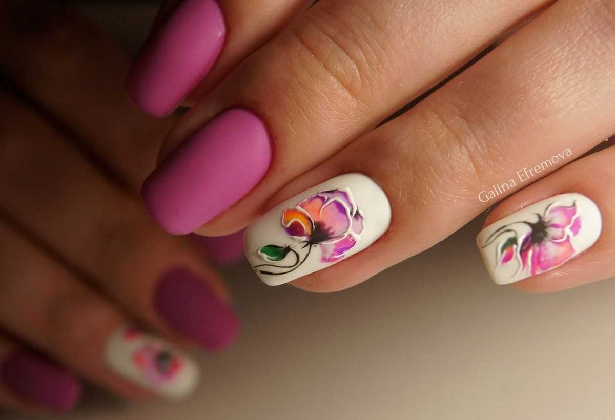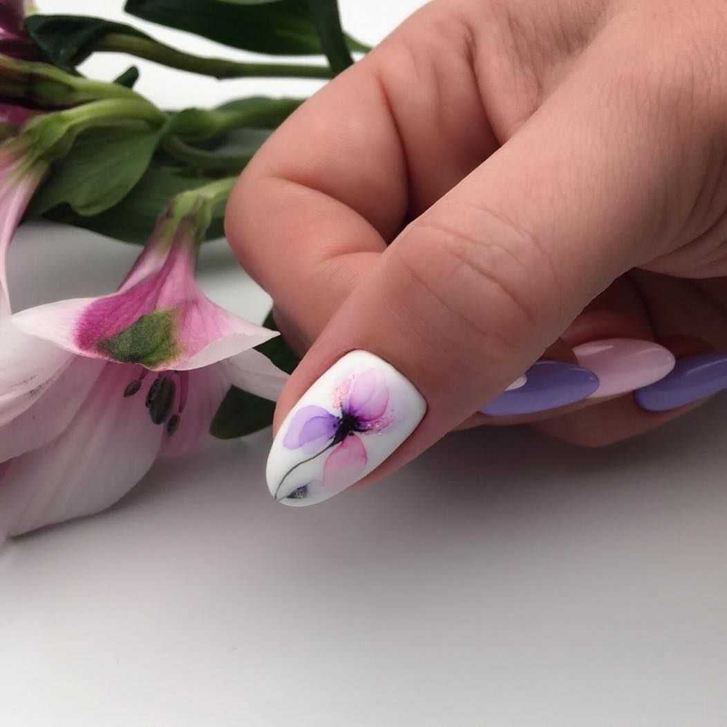 Если вы в душе настоящий художник, вам понравится дизайн ногтей с акварельным эффектом. Это новый современный художественный стиль маникюра. Его отличительными особенностями являются использование матового гель-лака и отсутствие четких границ в рисунке.