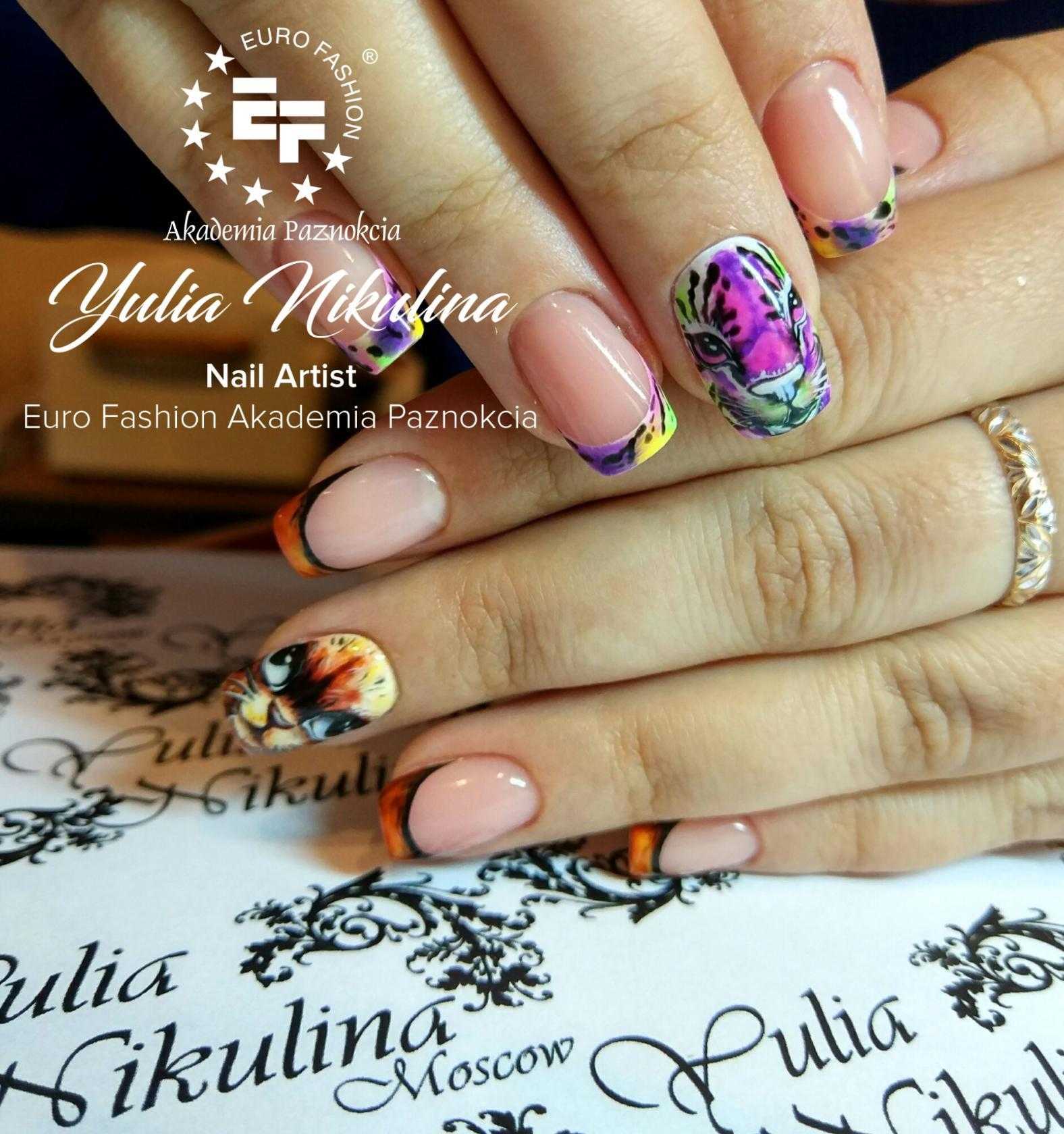 Вид и размер рисунка на ногтевой пластине может быть совершенно разным, в зависимости от вашей задумки и способа реализации. Более того, нанести два одинаковых или симметричных рисунка на ноготки не получится даже у самого опытного мастера. Вначале необходимо покрыть ноготки основным цветом. Затем на специальной подложке слегка разбавляют акварельную краску водой. Слегка жидкая текстура очень хорошо распределяется на поверхности ногтевой пластины. Благодаря этому получается добиться той самой плавности перехода оттенков и легкого градиента. В случае, если необходимо высветлить или затемнить некоторые участки дизайна, просто используйте другую кисть с краской или водой. Но учитывайте, что краски засыхают достаточно быстро, поэтому работать необходимо не медля.