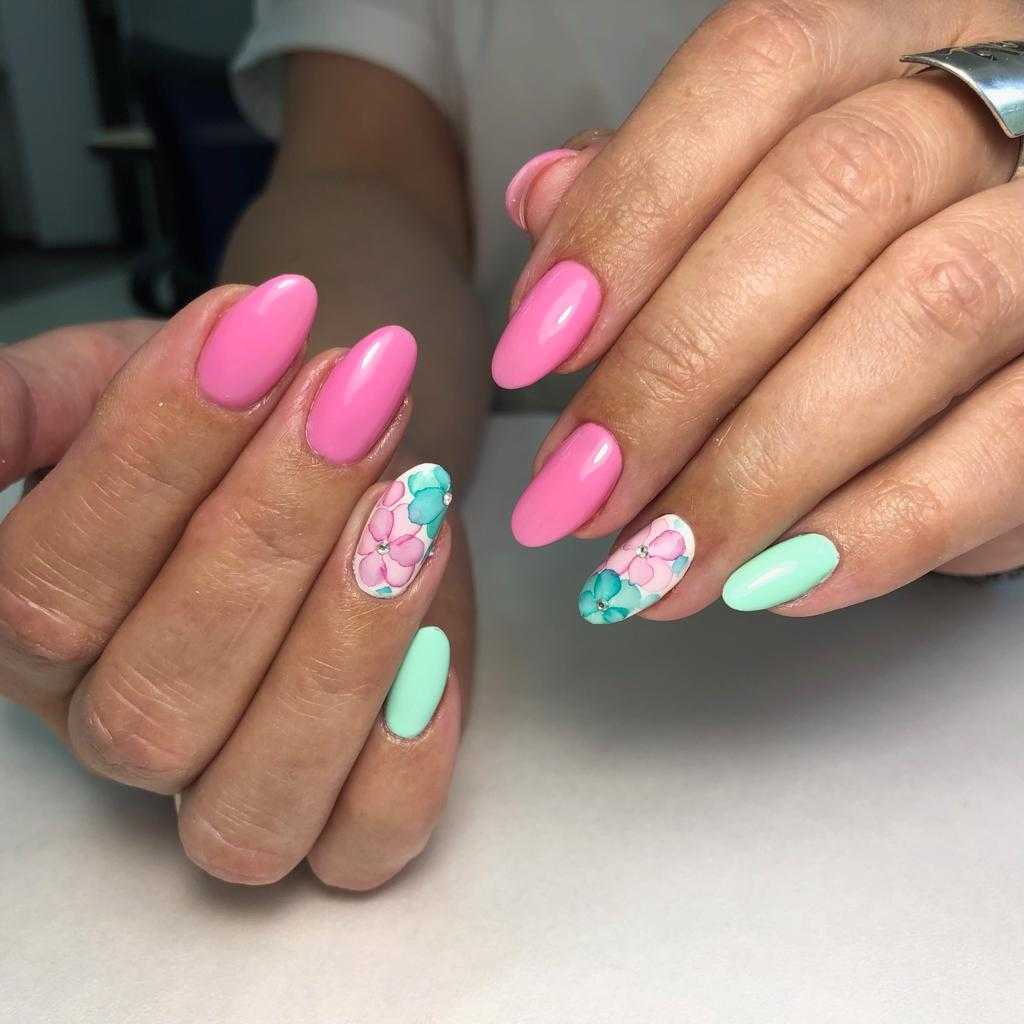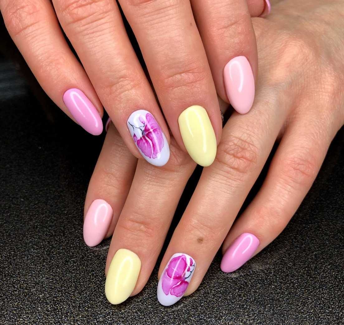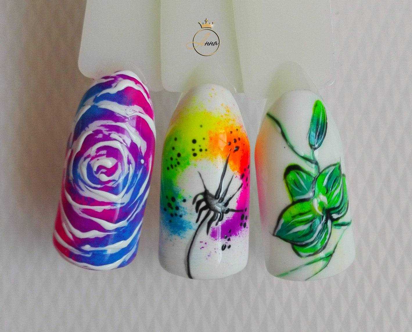 Конечно же, процесс создания такого дизайна занимает довольно большое количество времени. Но результат определенно того стоит. Кстати нейл-мастера зачастую предлагают делать акварельный дизайн не на всех ноготках. Особенно это касается оформления яркими оттенками. Всего два-три рисунка подчеркнут маникюр и сделают его чуть более привлекательным.