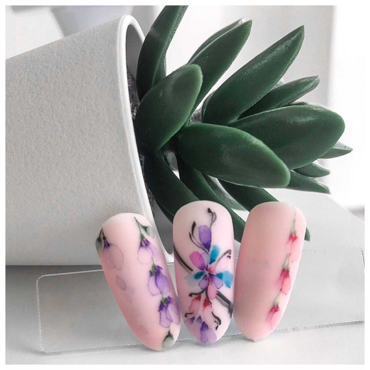 Прекрасный маникюр с рисунком на ногтях акварельной краской готов!