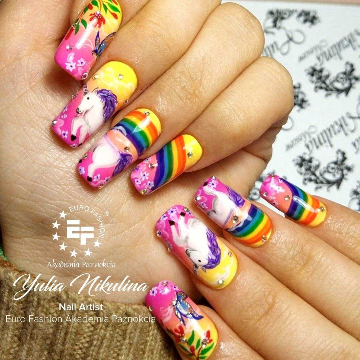 Шаг 4. Без снятия липкого слоя можно приступать к дизайну: разместите желаемые элементы на ноготке или дополните все росписью;