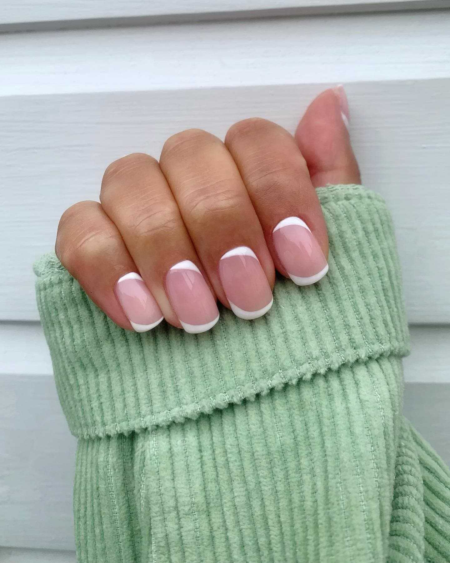 Зачастую френч делают на коротких ногтях с квадратной или «смягчённой» квадратной формой — такая комбинация придаёт пальчикам естественности.