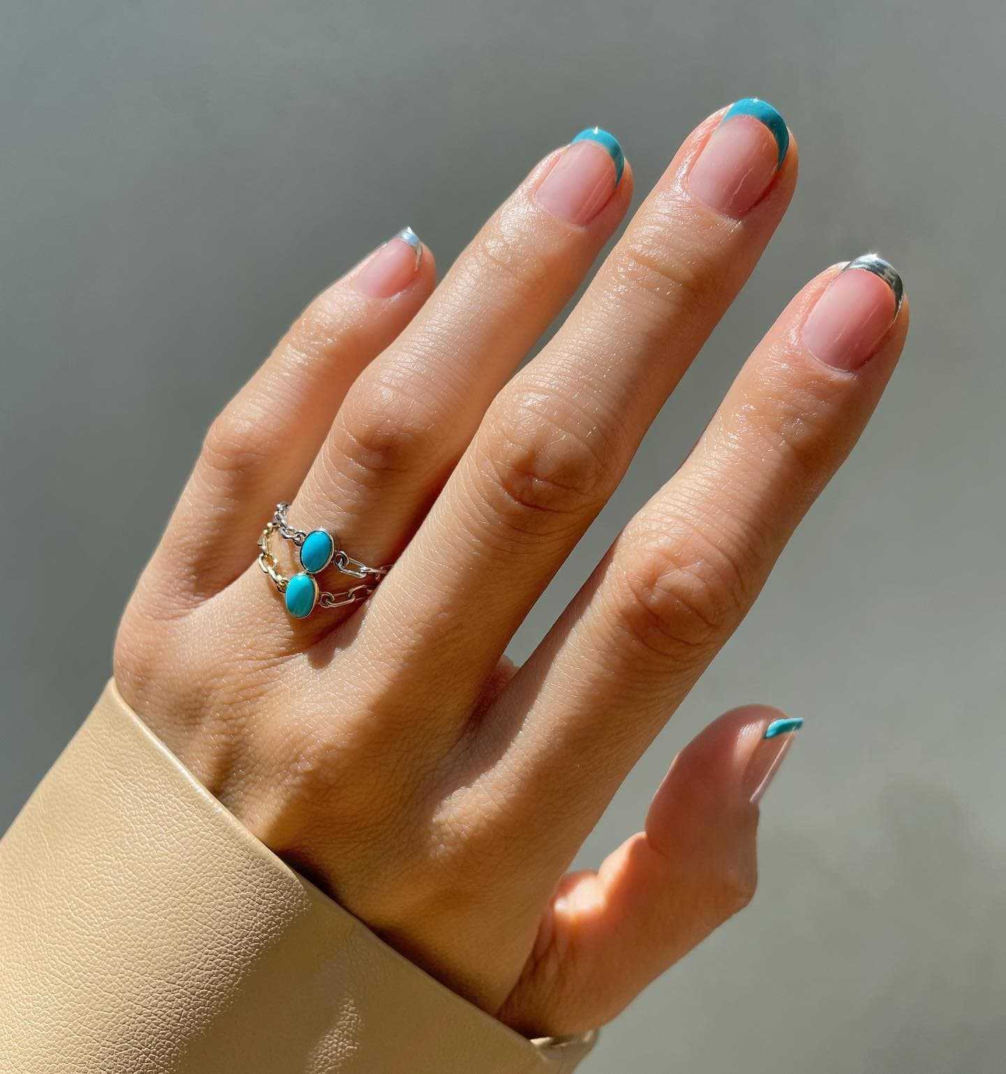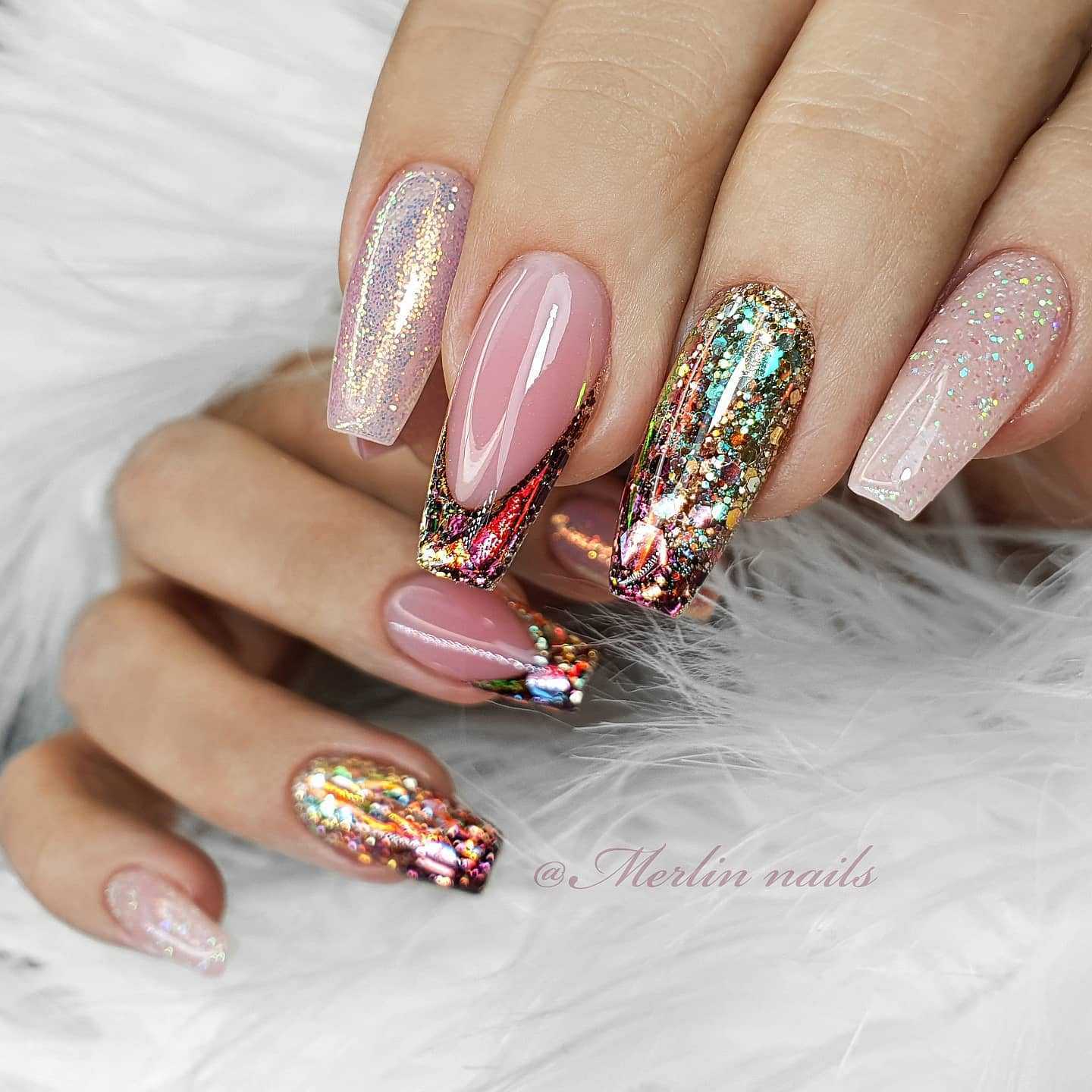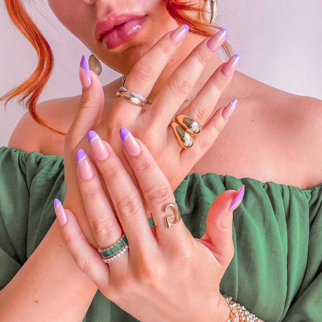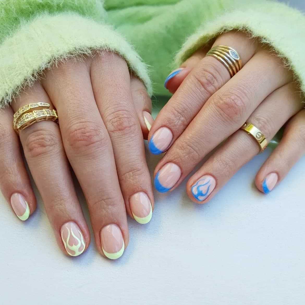 Френч 2022, фото новинки которого вы сможете увидеть в статье далее, часто соединяет в себе разные стили, например такие техники как «луна» и «битое стекло».