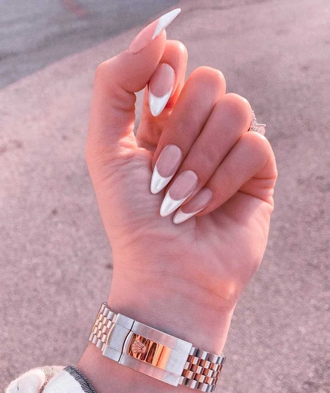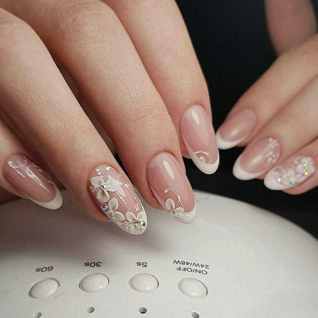 Белый френч на длинные ногти всех форм: новинки и идеи 2023-2024