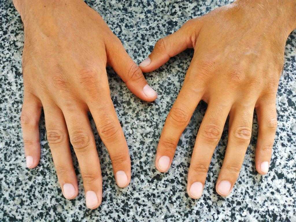 Мужская версия французского маникюра выглядит не так, как женская. Она не такая очевидная и применяется для создания идеально чистых и аккуратных ногтей. Здесь мастер полностью спиливает свободный край мужского ногтя, полирует поверхность, обезжиривает его и наносить белый полупрозрачный лак с легким телесным оттенком на край ногтя.