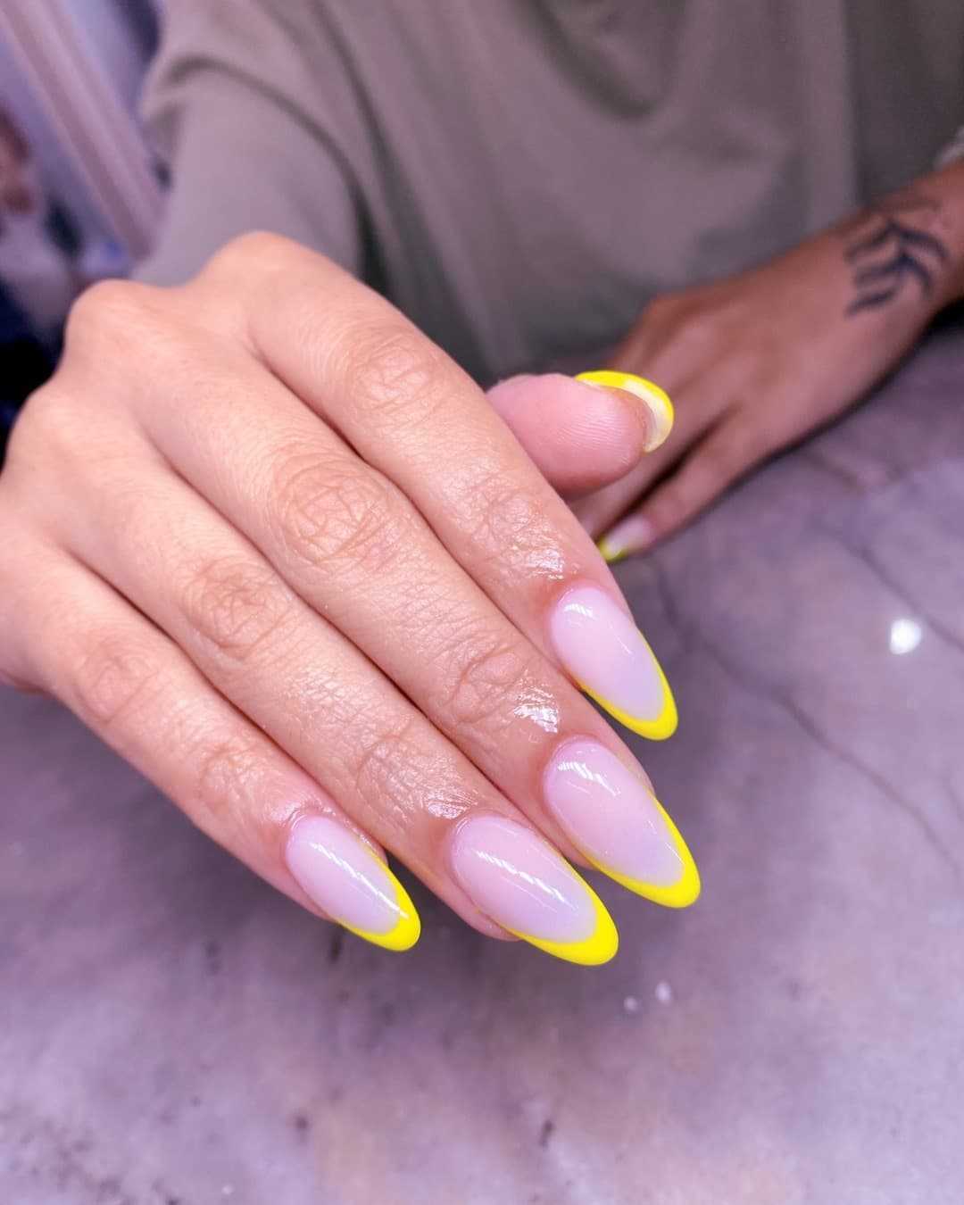 Сочетание французского и американского стиля в дизайне ногтей проявляется в виде необычных градиентов. Типично французское основание прекрасно сочетается с кончиками в американском стиле.
