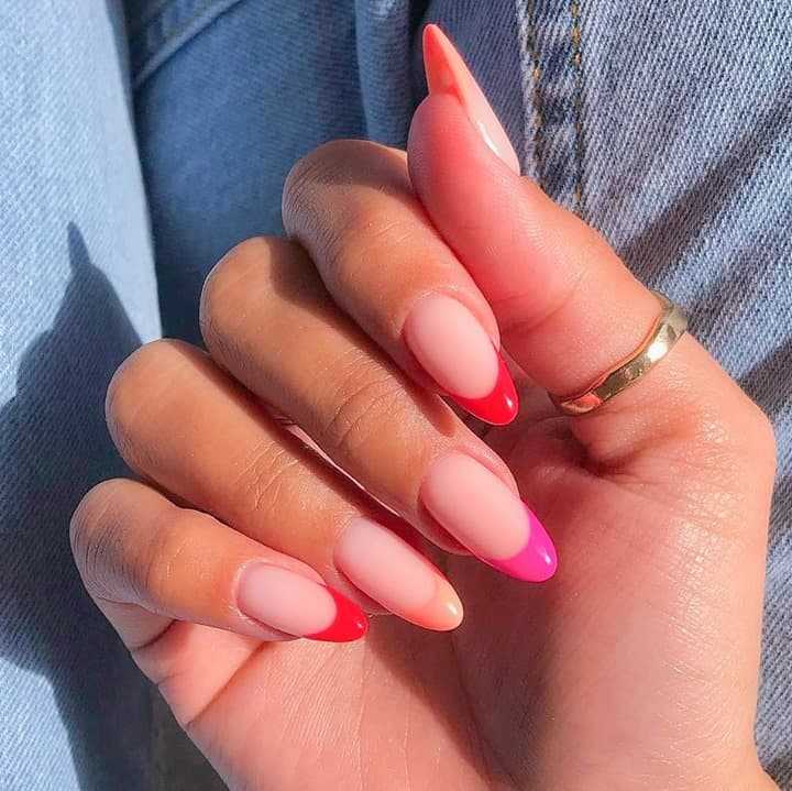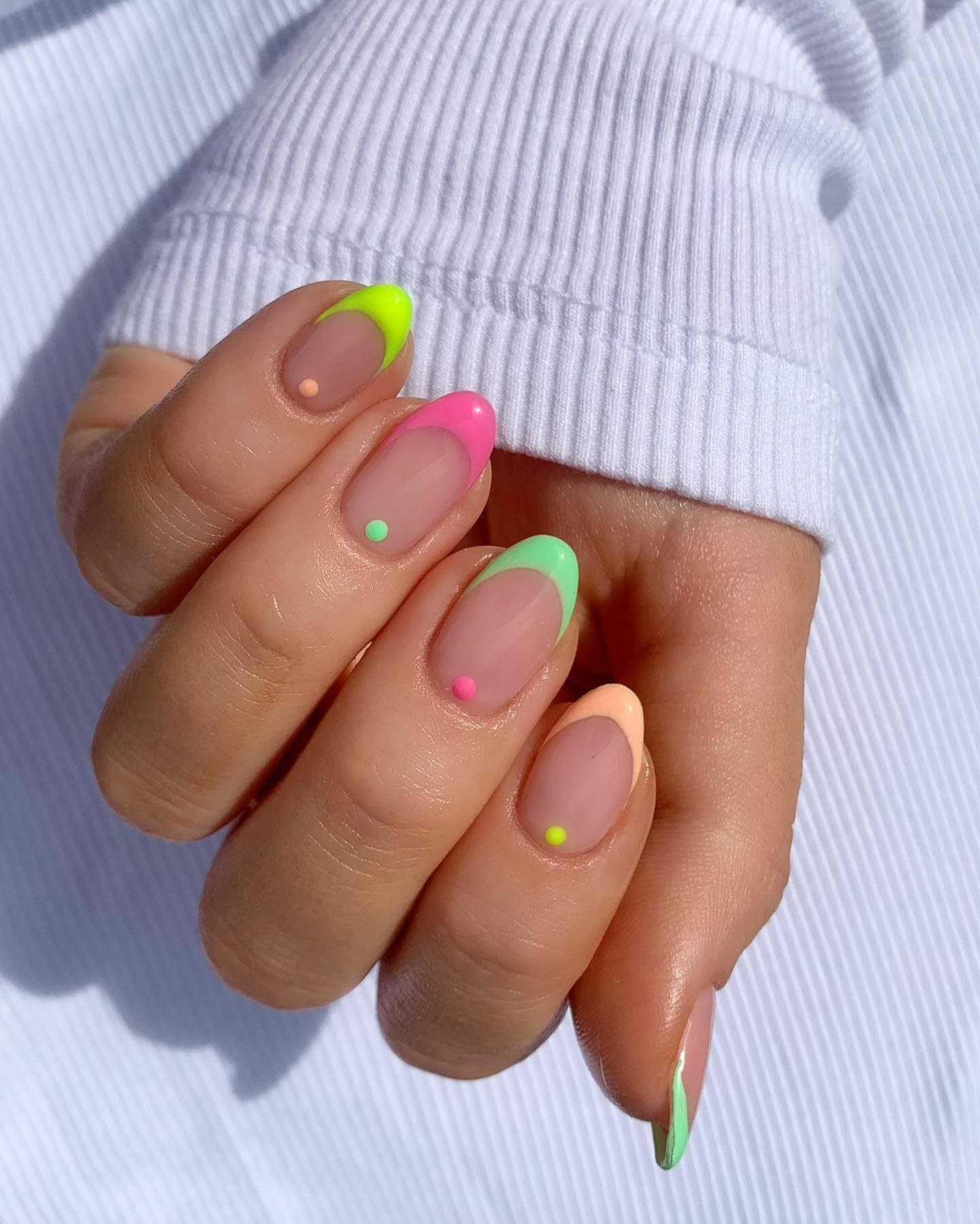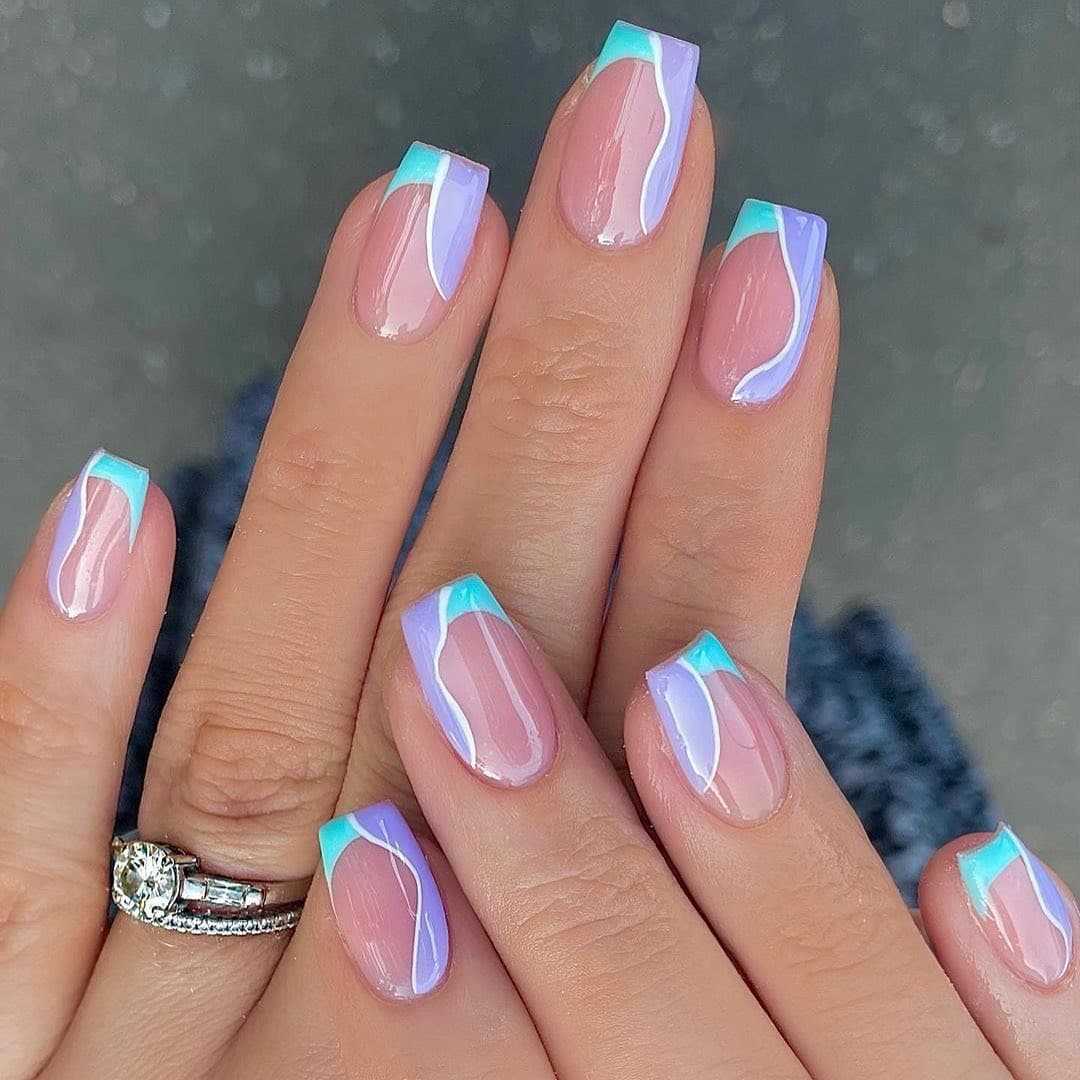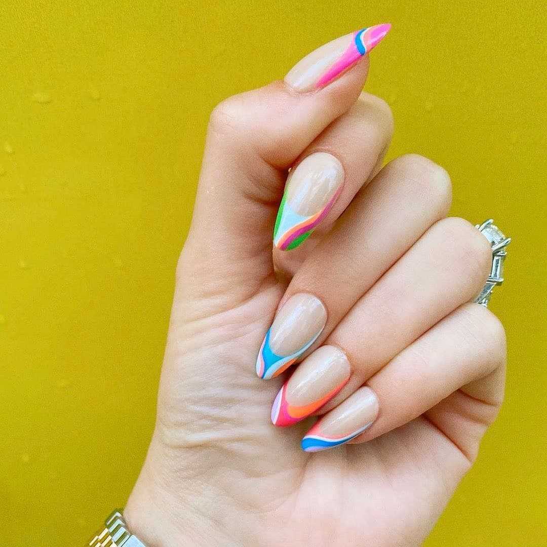 Френч-твист предполагает яркие абстрактные узоры и их переплетения. Здесь ногти должны быть похожи на цветные карамельки. Это еще один отличный маникюр для лета.
