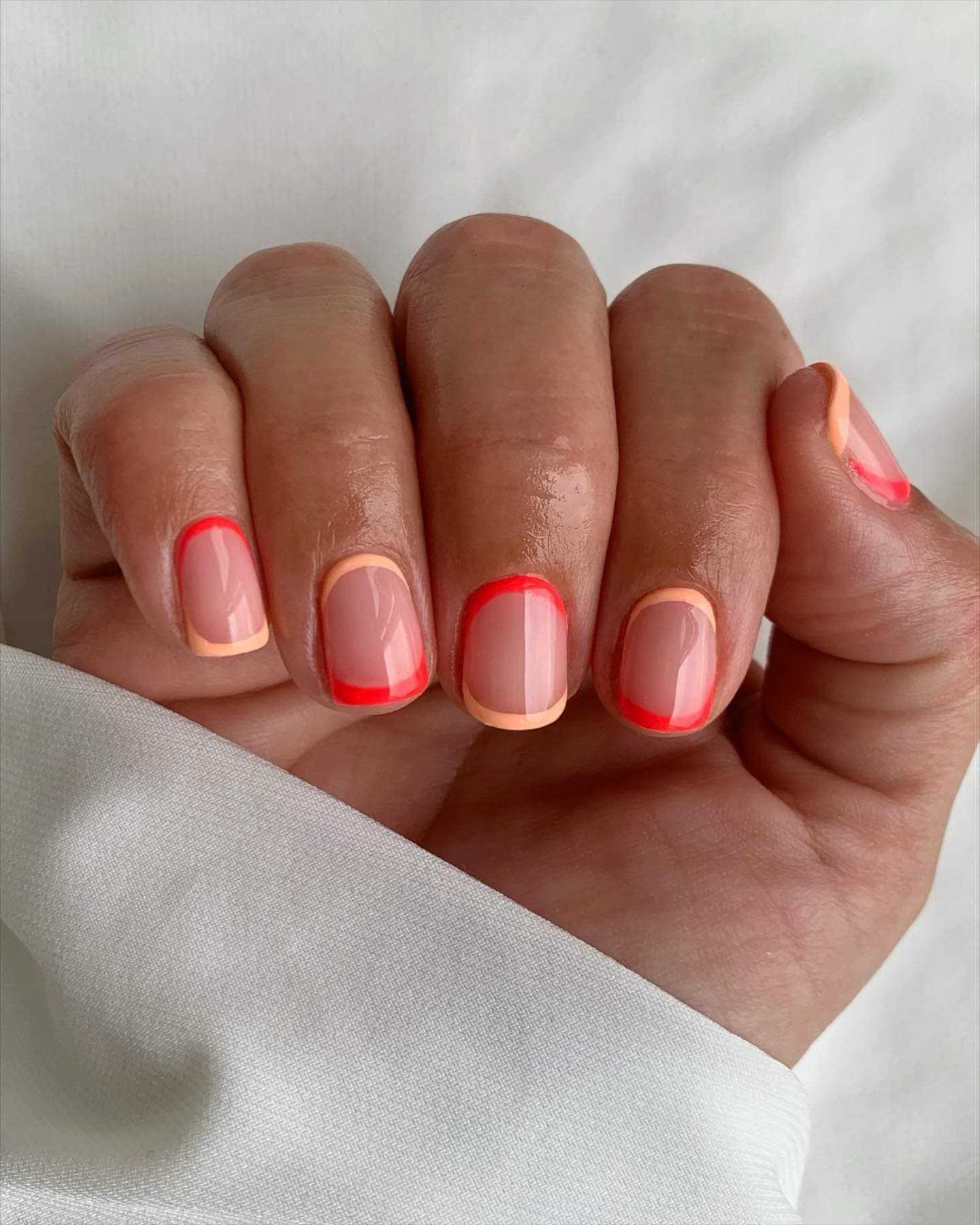 При создании модного френча на укороченных ногтях следует придерживаться следующих условий: Избегать сочетания резких контрастных цветовых сочетаний. Лучше соблюсти переход в близких оттенках: красный и бордовый, синий и голубой, фиолетовый и сиреневый.