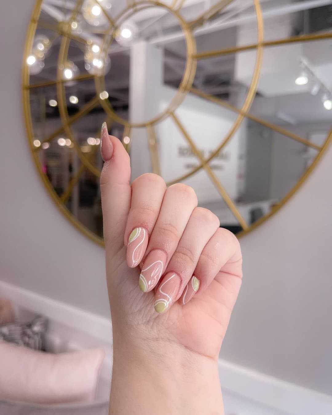 Нежным и самобытным он станет на миндалевидных и овальных ноготках средней длины. При выборе такой разновидности маникюра пальчики выглядят миниатюрными и грациозными.