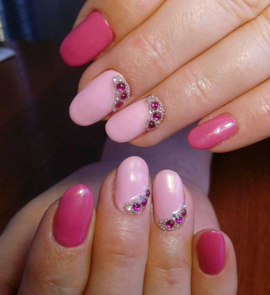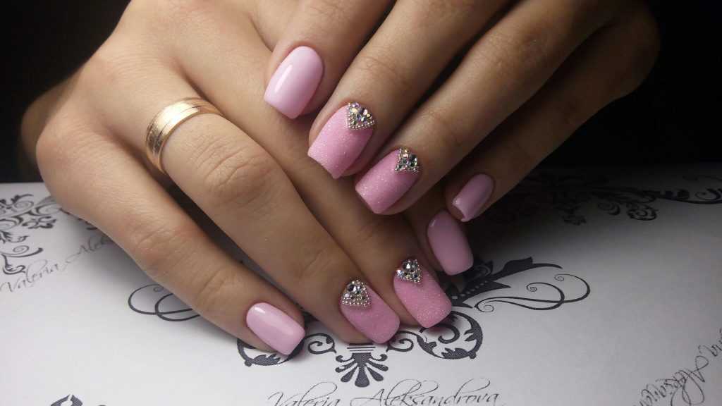 Розовый маникюр со стразами