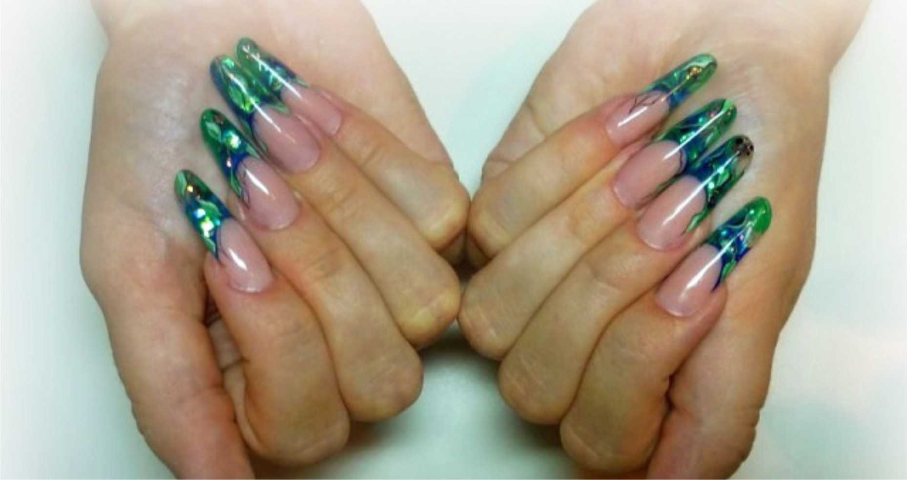 Наращивание отдаленно напоминает покрытие ногтей полимером, поскольку пластина аналогичным способом подготавливается для последующего наращивания. Тем более, что после создания искусственного ногтя можно использовать разные виды дизайна, в том числе украшать ногти с использованием полимеров, блесток и фольги.