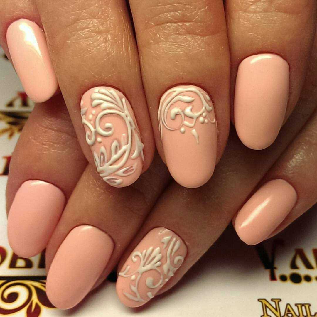 Отметим, что наиболее удачно смотрится сочетание нюд в монохроме с рисунком или узором на одном или нескольких ноготках.