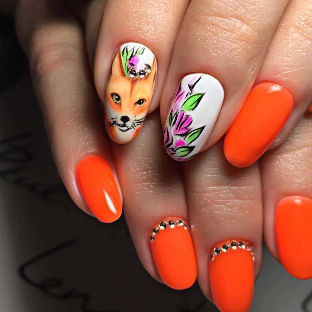 Довольно востребован в настоящем сезоне и нейл-арт. Здесь рисунки принято прорисовывать вручную.