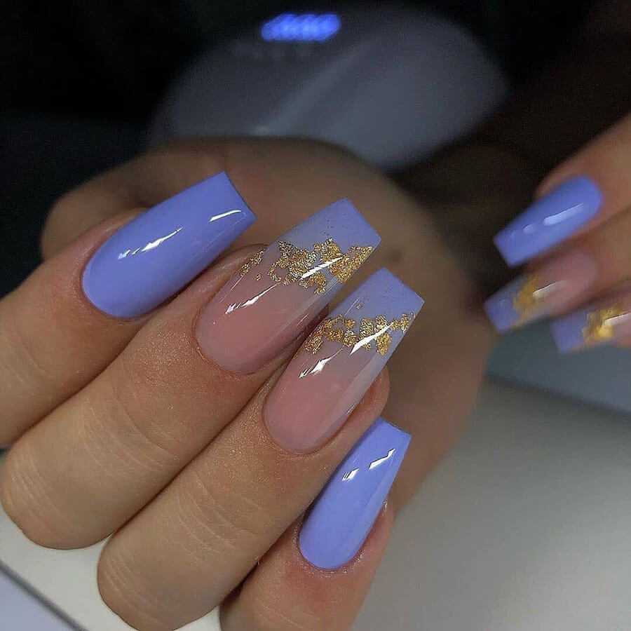 Омбре или градиент — помощник в создании любого образа — праздничного или повседневного. В первом случае в напарники к золотому выбирают контрастный цвет лака — черный, синий, красный, ярко-белый и другие. Для повседневного дизайна — нюдовые, молочные, розовые и другие тона.