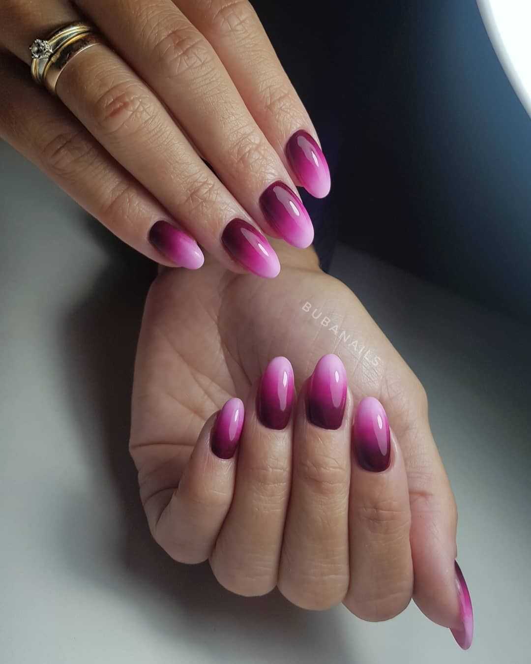 При помощи такой технологии получится невероятно нежный и аккуратный дизайн градиентного маникюра.