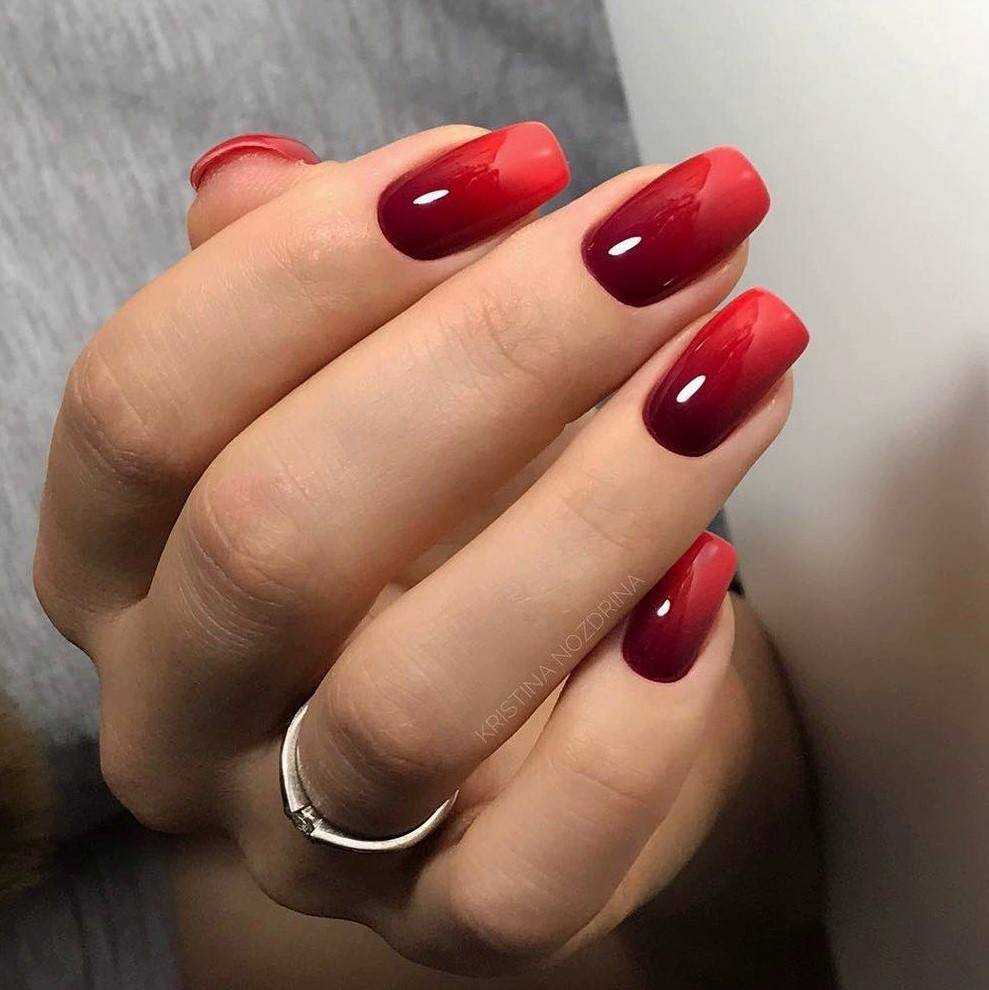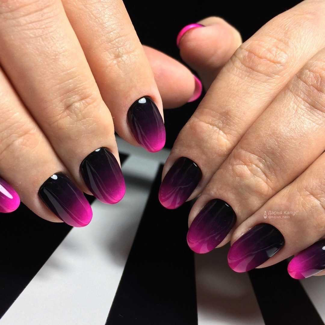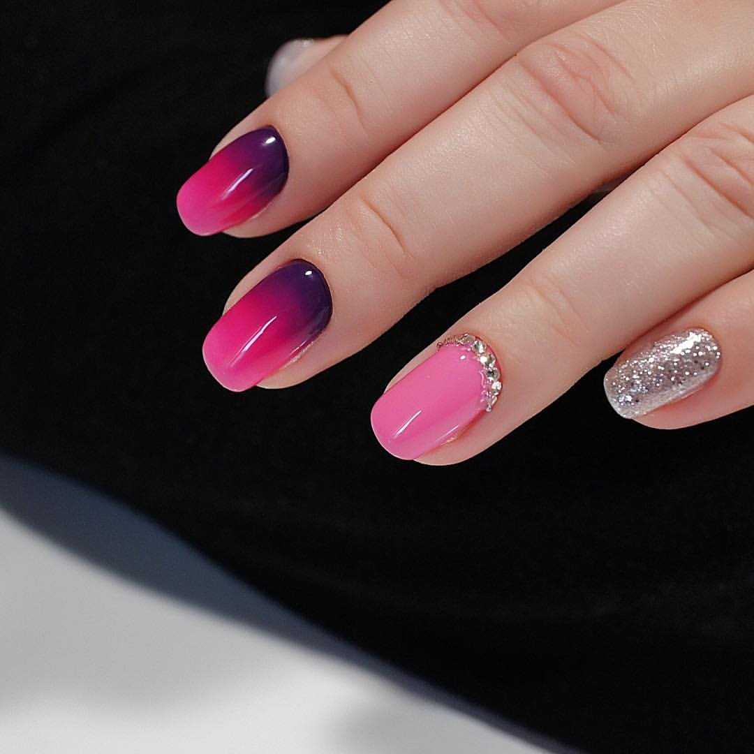 Квадратная форма как нельзя лучше подходит для плавных переходов, хотя для нее можно выбрать и более насыщенные цвета лака. Например, стильно и строго будет смотреться черное омбре. Обязательно сочетайте такой маникюр с дополнительными декоративными элементами, чтобы он стал более изящным и модным.