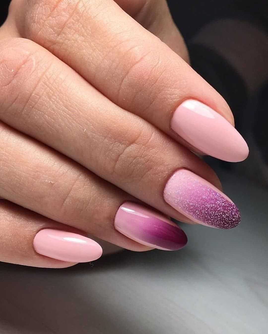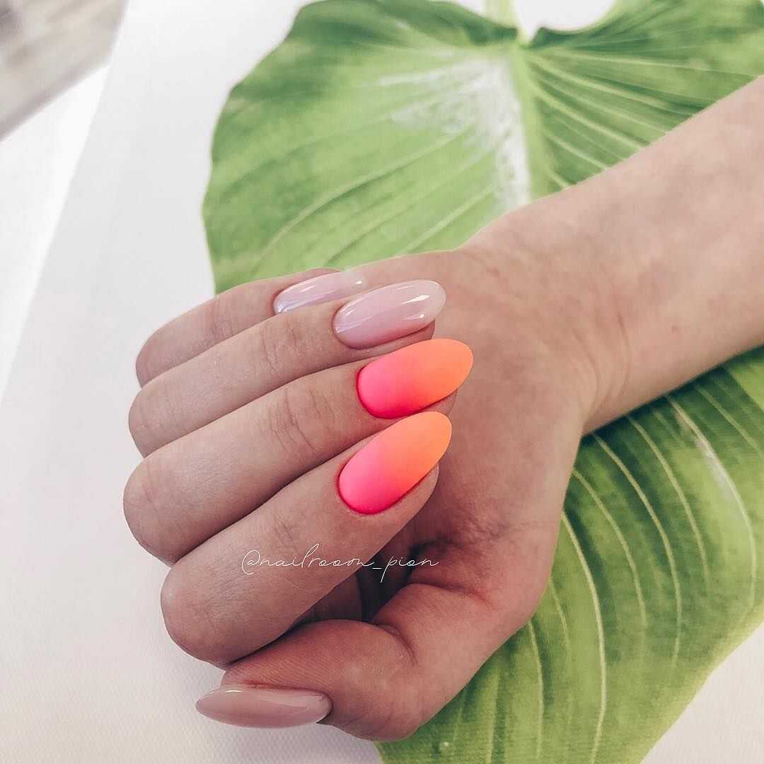 Омбре — универсальный дизайн ногтей, который подходит к любому образу. Он отлично смотрится на любой длине и форме ногтей. Главное — выбрать подходящий оттенок, чтобы визуально не сделать пластину более широкой и короткой.