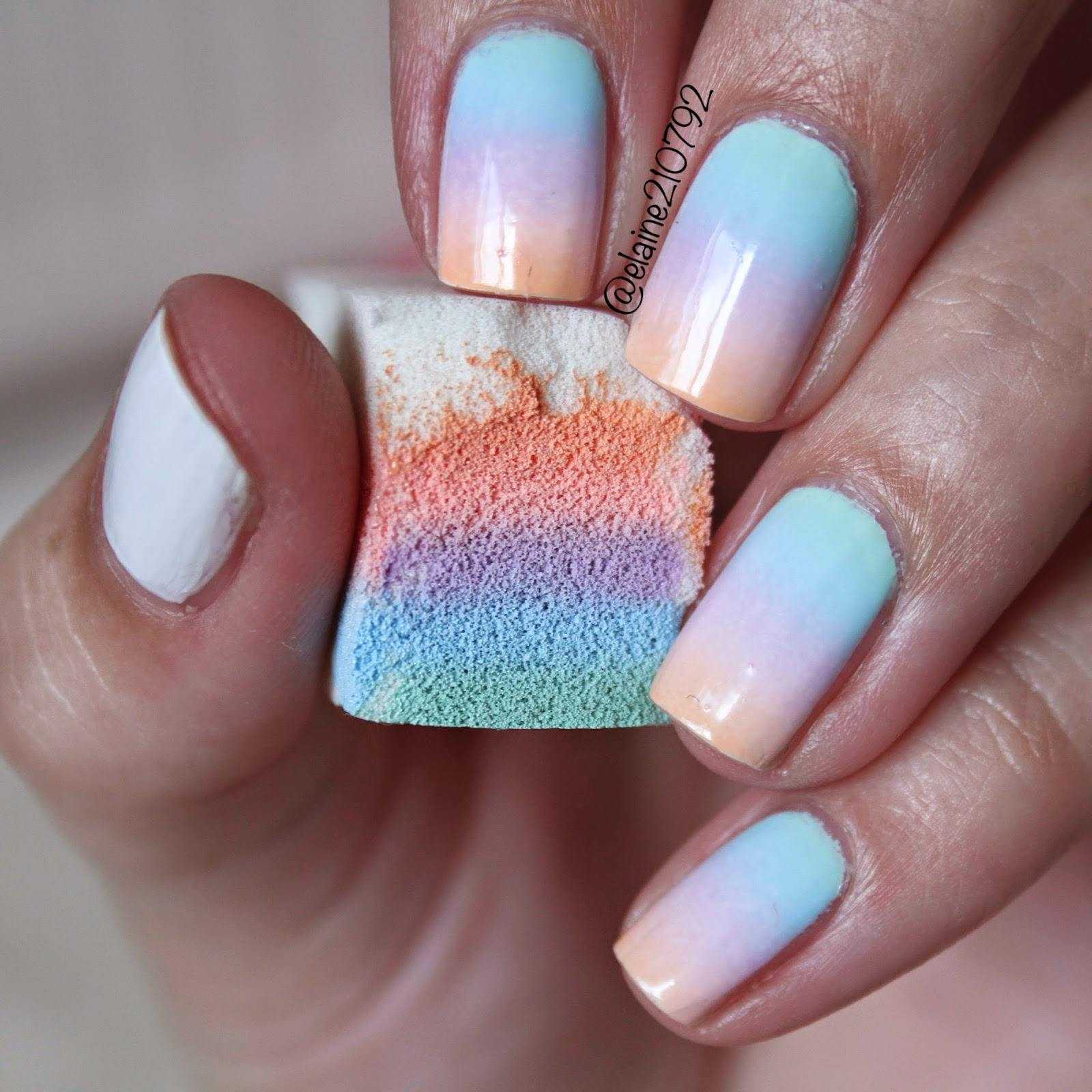 - при помощи губки впитываем лаки и аккуратными движениями размываем их по ногтевой пластине;