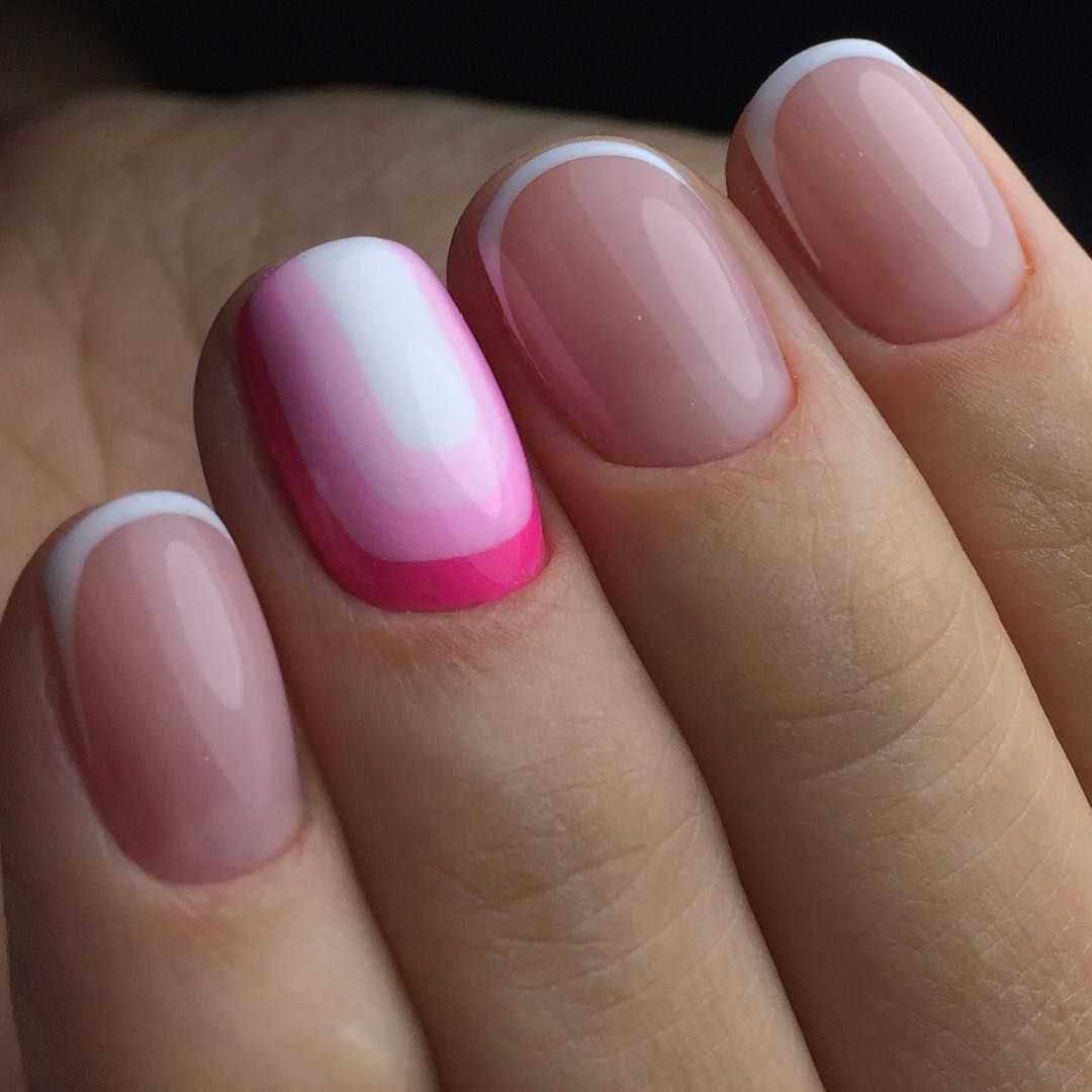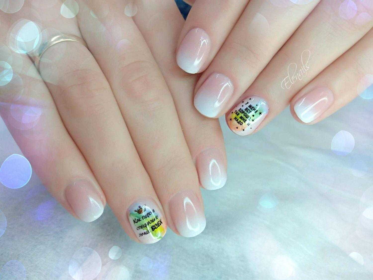 Французский омбре-маникюр – шанс для коротких ногтей. И здесь приветствуются нежные пастельные оттенки.