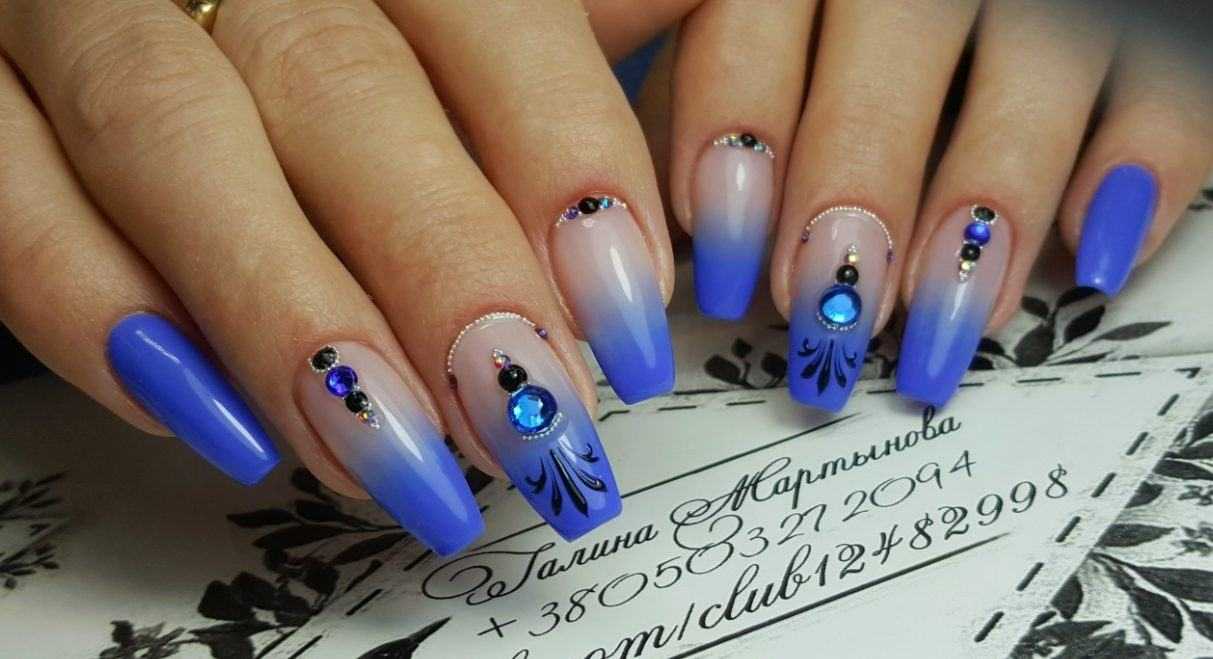 Омбре со стразами – ни одна модница не может устоять перед соблазном украсить свои ногти камушками, особенно когда речь идёт о торжественных случаях. Стразы впишутся в любой образ, надо только правильно подобрать их размер, цвет и количество. Градиент на ногтях сам по себе очень нарядно выглядит, поэтому камней не должно быть много. Они подчеркивают, а не перекрывают красивый дизайн.