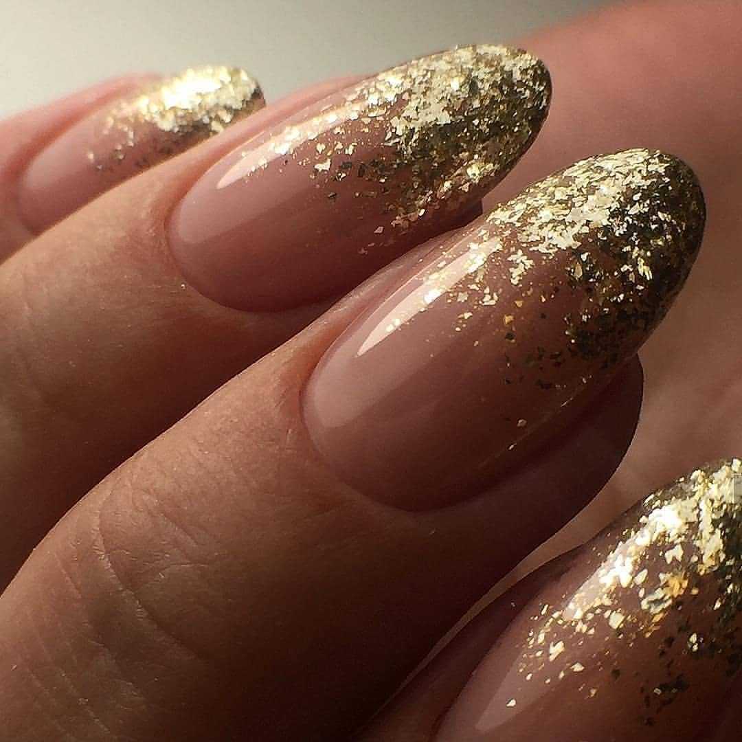 Блестящий градиент. Здесь может поучаствовать втирка, блёстки, глиттер. Фольга, металлизированные ленты сейчас тоже в тренде и позволяют создать незабываемые узоры.
