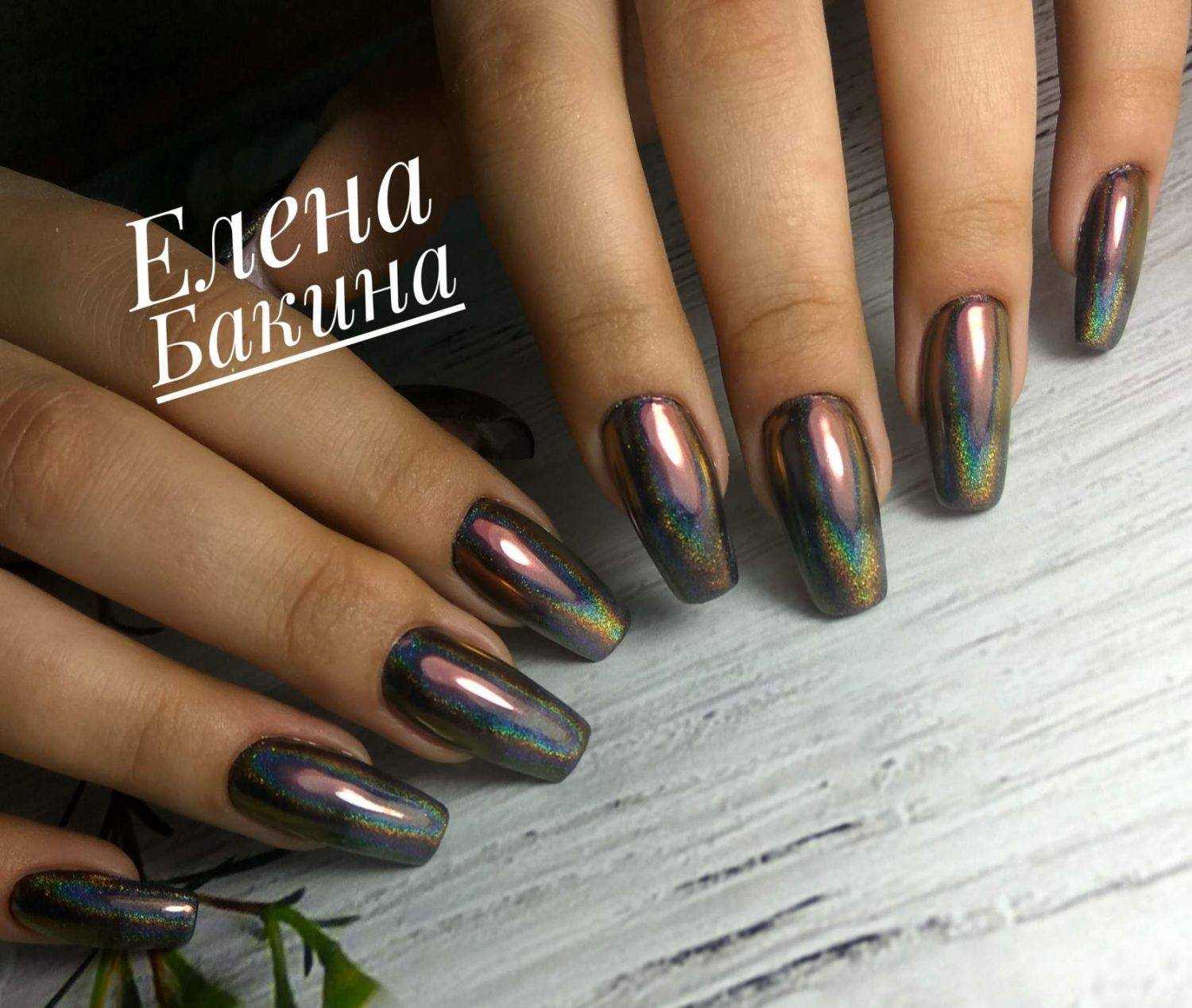 - Омбре маникюр с металлическими оттенками. Для создания современного и стильного эффекта на ногтях используйте металлические оттенки в нескольких оттенках одного цвета. Нанесите первый оттенок на кончик ногтя, затем добавьте следующий оттенок металлической краски, перемешайте и плавно переходите к основанию ногтя. Повторите этот процесс, пока не достигнете нужного эффекта. Этот стиль идеально подойдет для тех, кто ищет что-то необычное и новое.