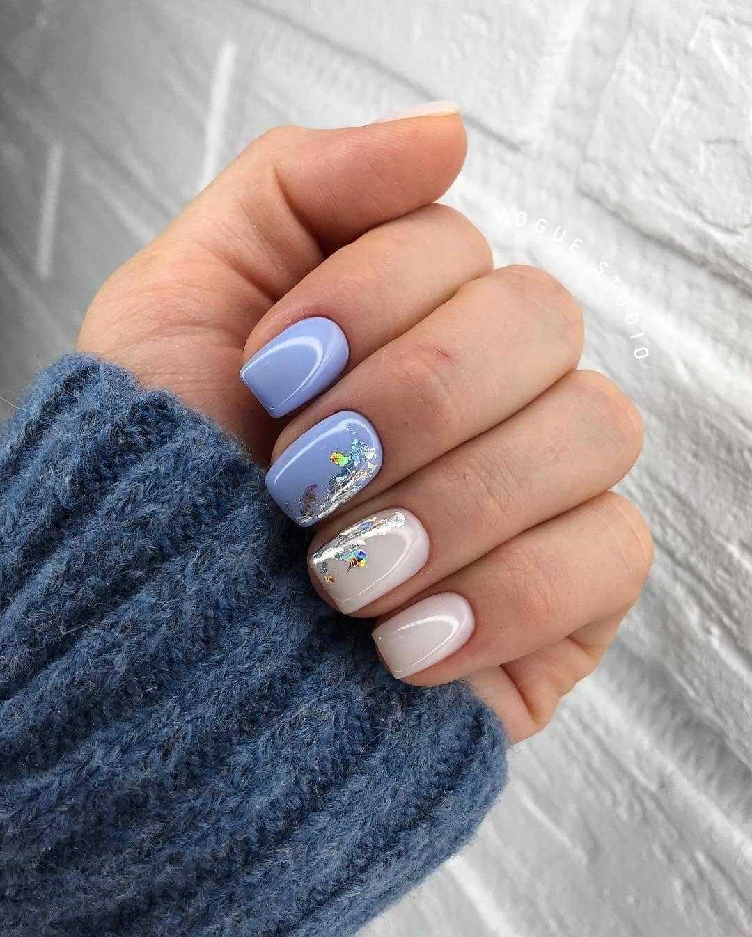Голубой цвет — это яркий и свежий оттенок, который может быть использован для создания интересного и красивого сочетания с молочным маникюром.