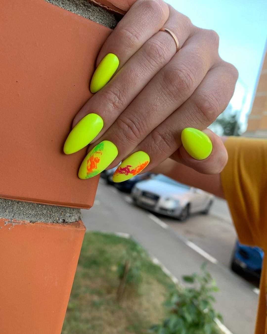 Лаконично и сдержанно будет смотреться матовый маникюр в ярких оттенках и кислотных тонах. Если яркие оттенки надоели, то их всегда можно разбавить графикой, нюдом и блестками.