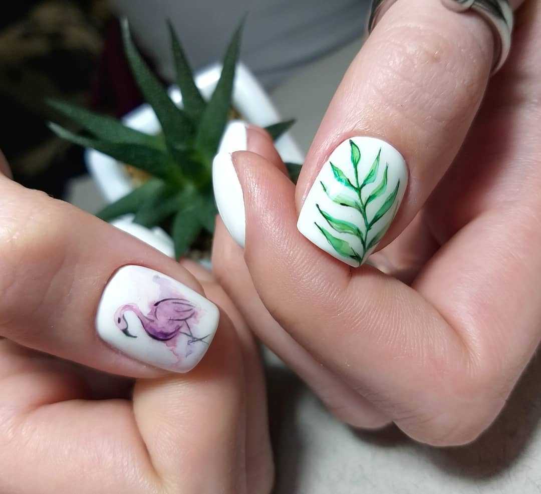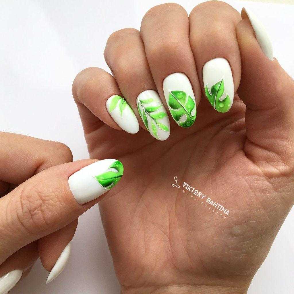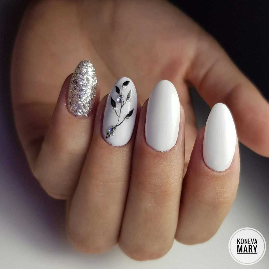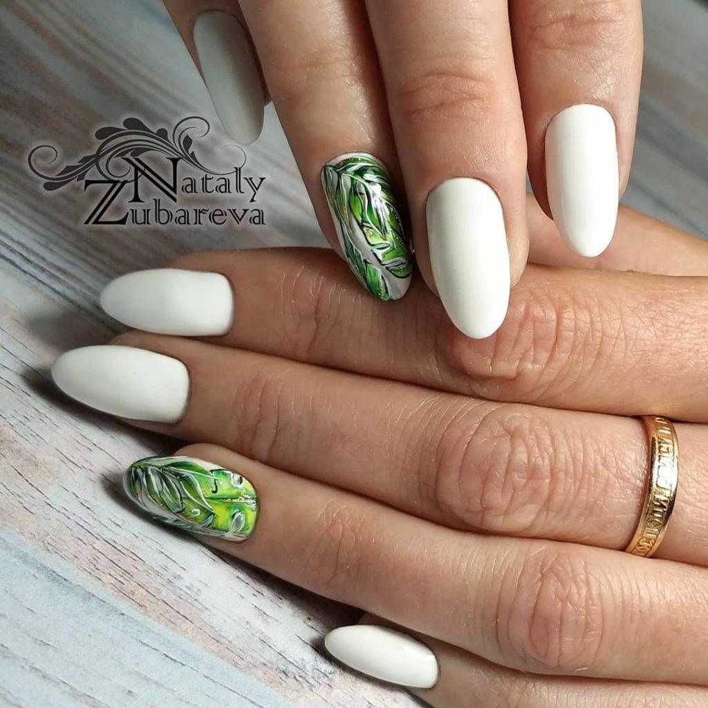 Можно использовать белую палитру лака как базовую и создавать поверх нее настоящие шедевры. Такой дизайн не останется незамеченным, что обеспечит «хозяйке» нейл-арта хорошее настроение.
