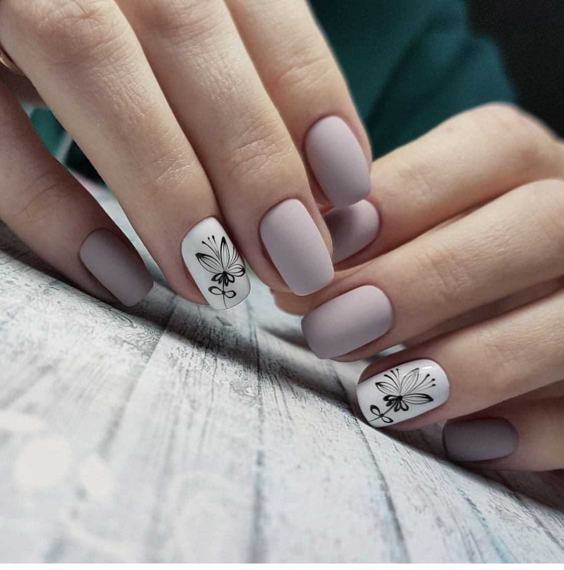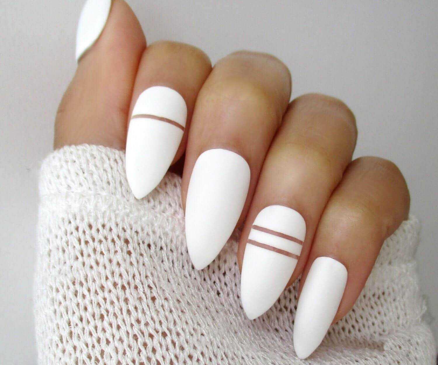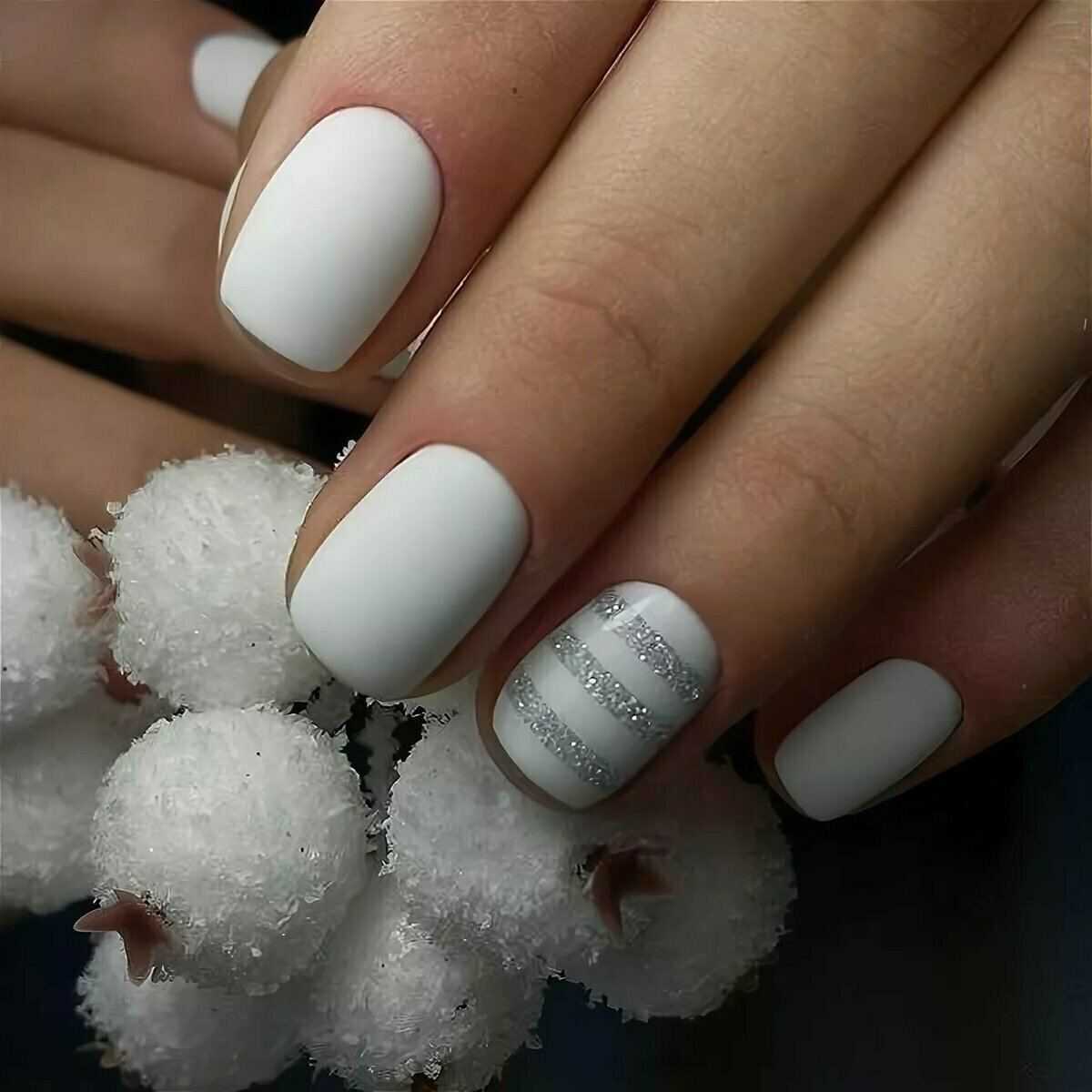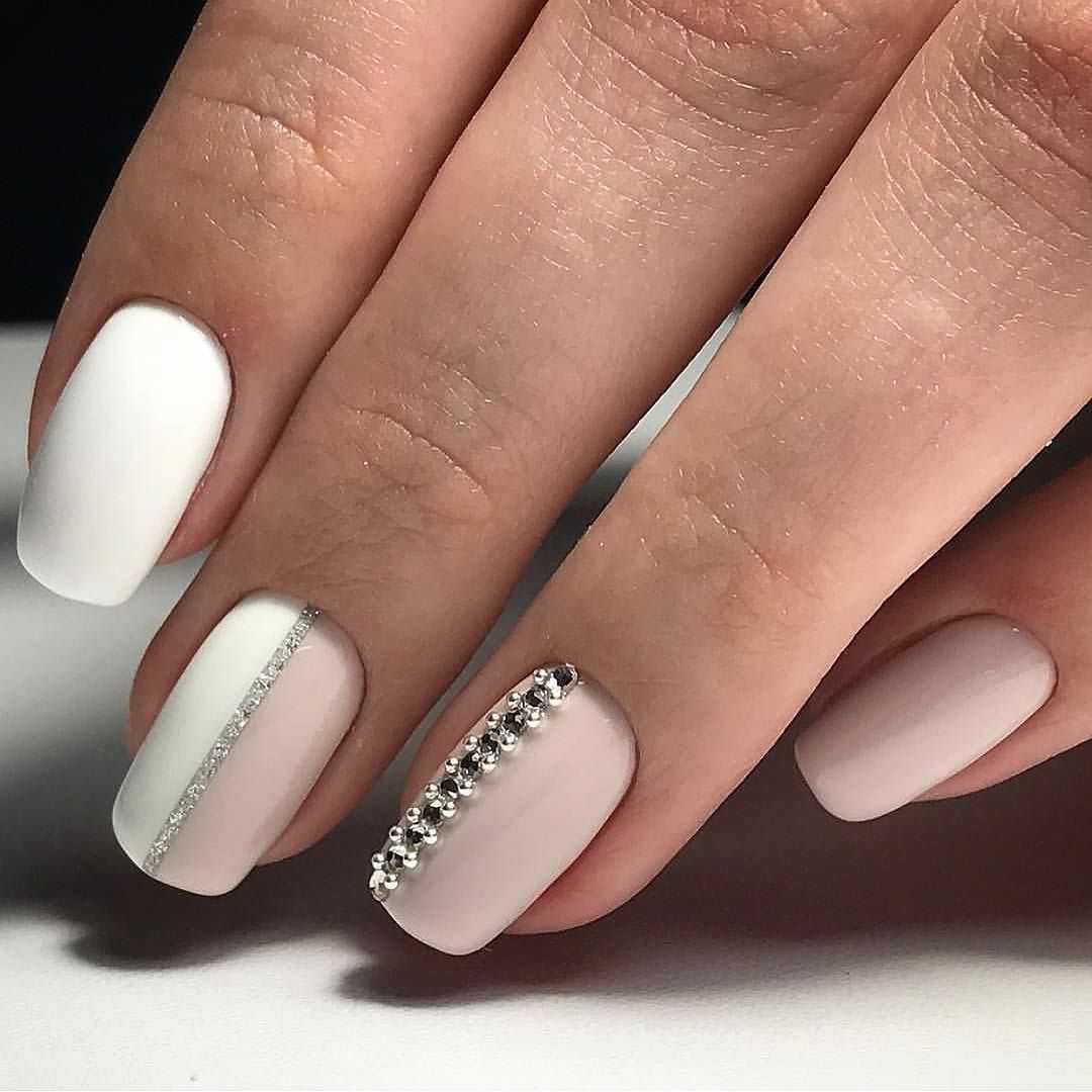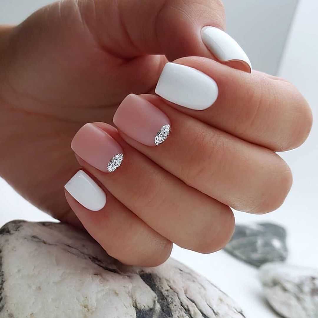 нюд с матовым белым. Идеальный вариант для коротких ногтей. Если нет времени или фантазии, то просто можно накрасить один ноготь на руке матовым белым. Он создаст приятный контраст, но вместе с тем все будет смотреться непринужденно.