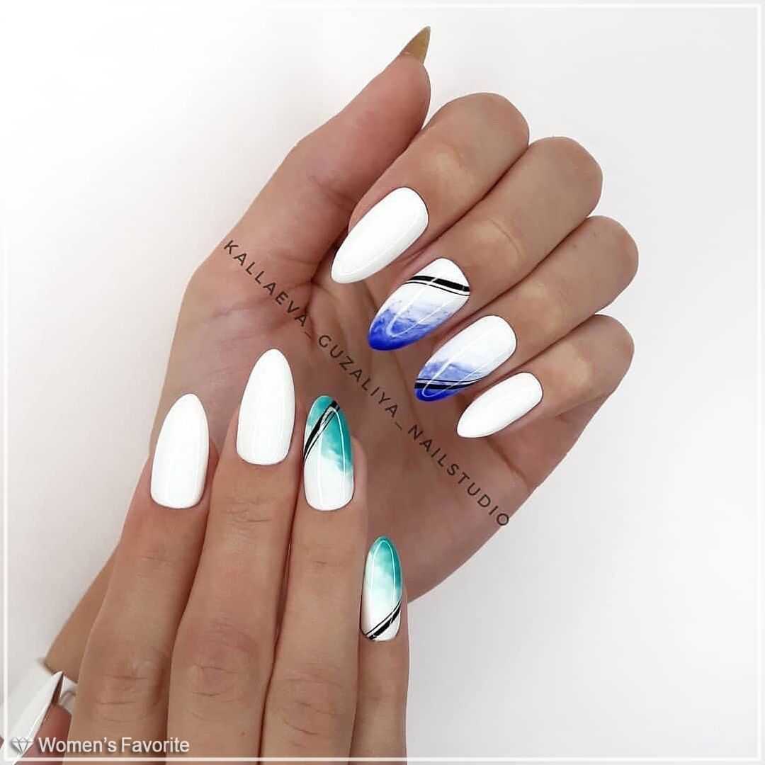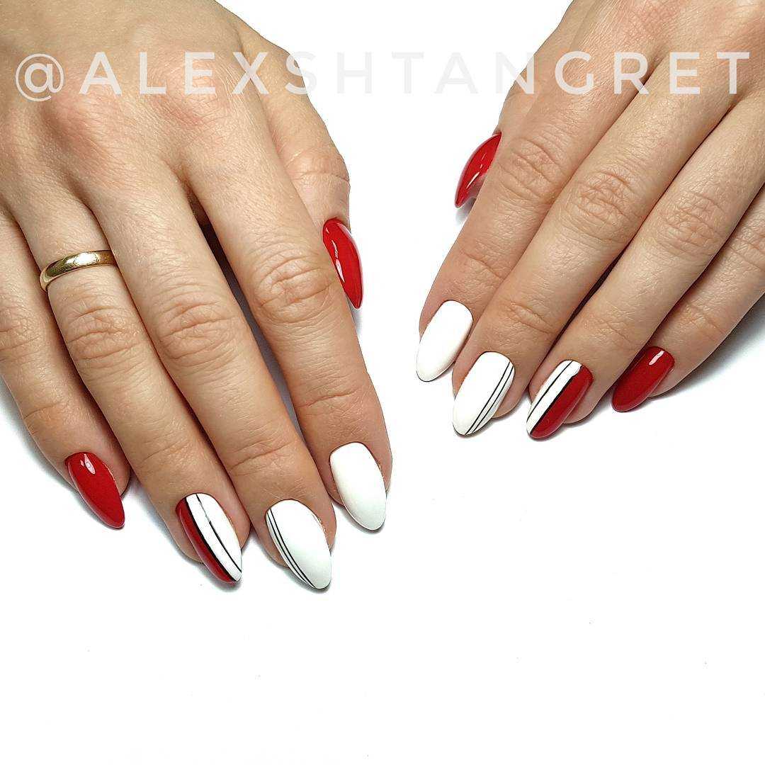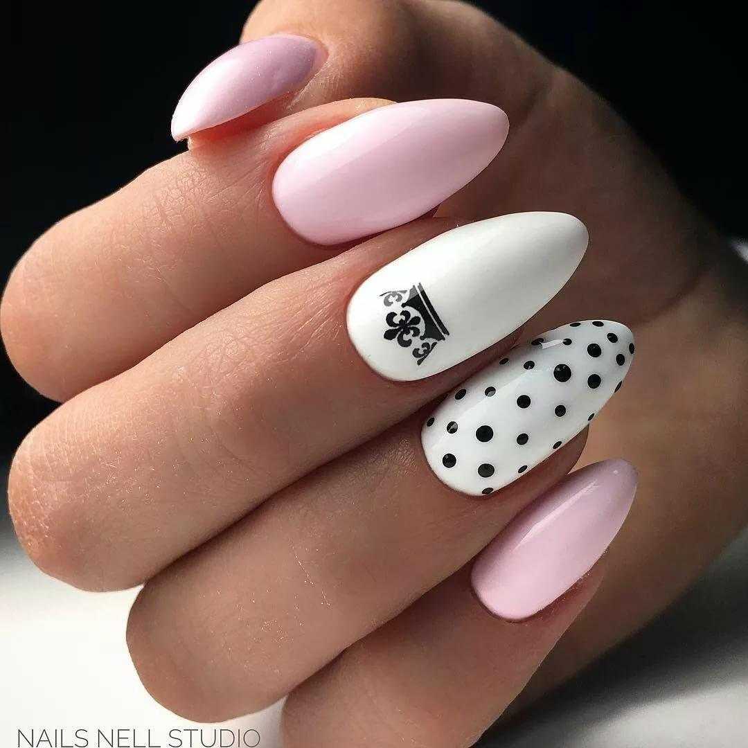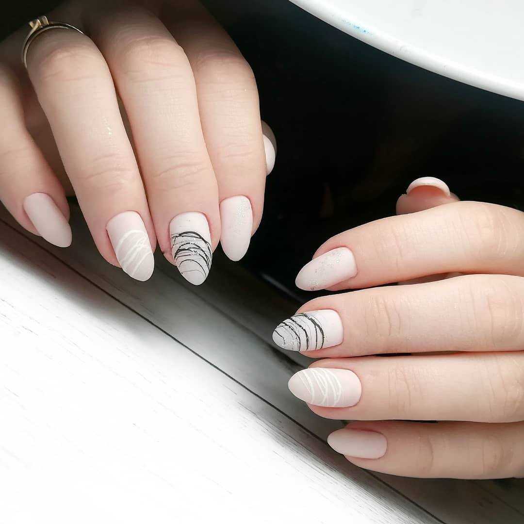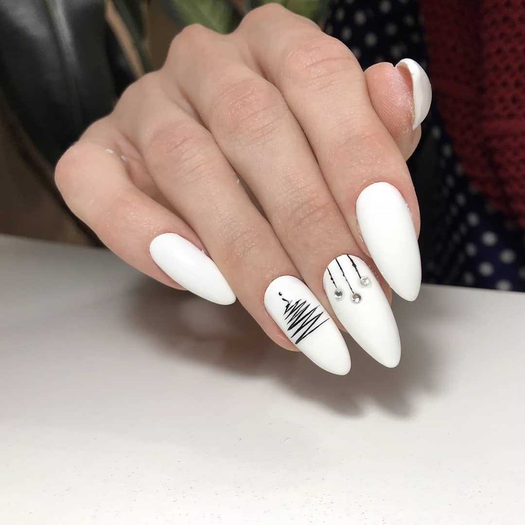 Миндаль — это нежность и женственность. Мы привыкли окрашивать такие ноготки в нежные пастельные оттенки лака или яркие страстные. Черный и белый, как правило, используются только в тематическом маникюре. Но вы абсолютно точно не проиграете, если выберете это классическое сочетание. Для миндальной формы подходят виды дизайна: лунный маникюр, негатив спейс или выделение пары ноготков прозрачным камуфляжем. Отлично подходит к овальной форме и матовая структура.