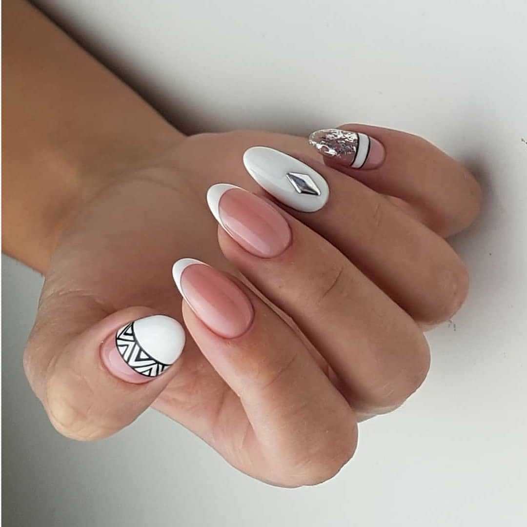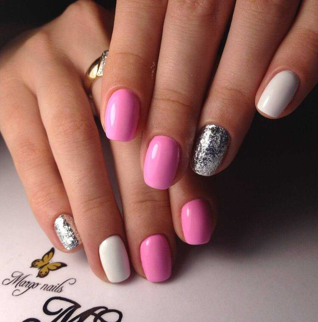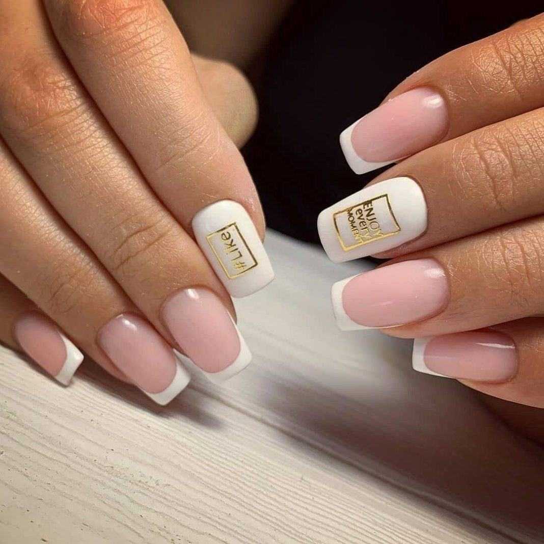 Трендом 2020 года считаются естественные и натуральные оттенки, поэтому пока отложим в сторонку черно-белые нейл-арты и обратим свое внимание на нежный белый маникюр с розовым. Сочетание белого и розового выглядит очень женственно и изящно