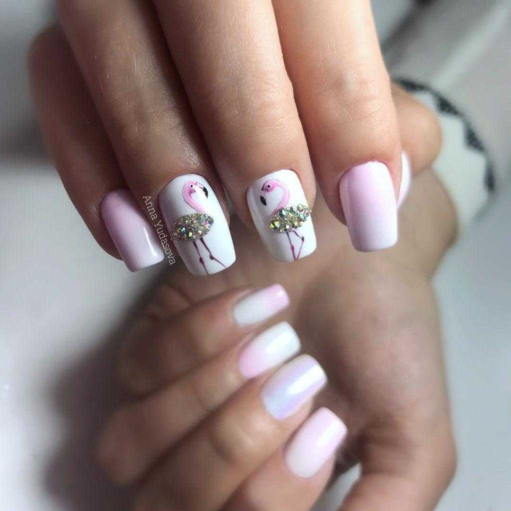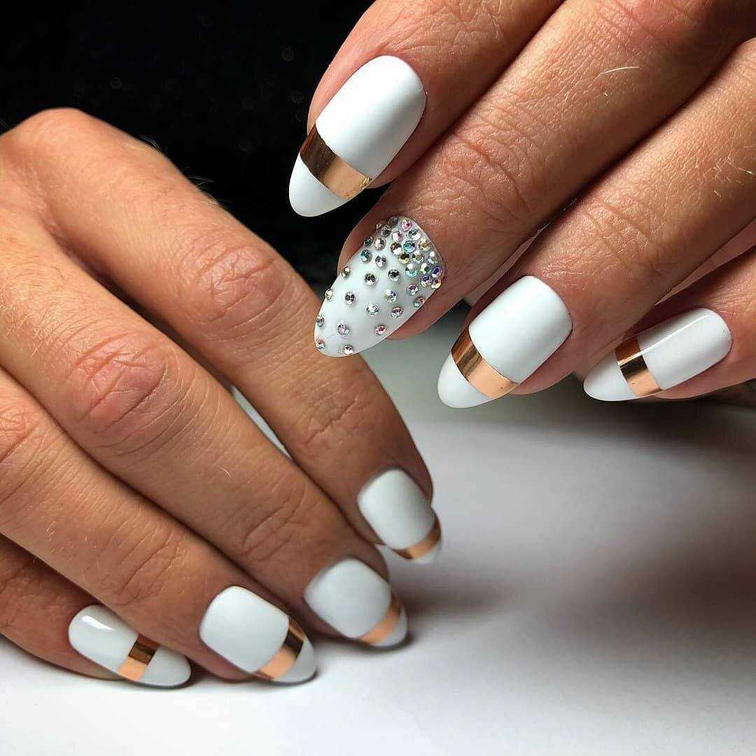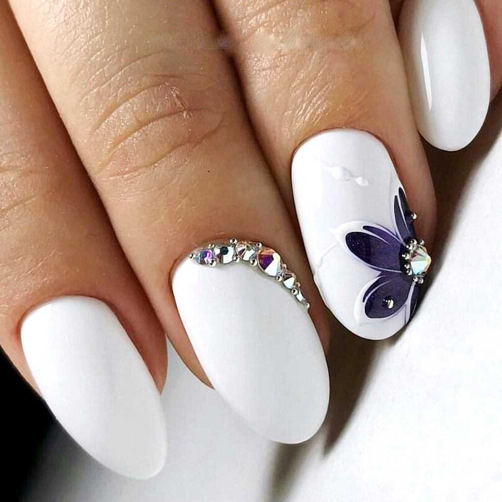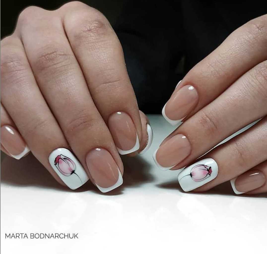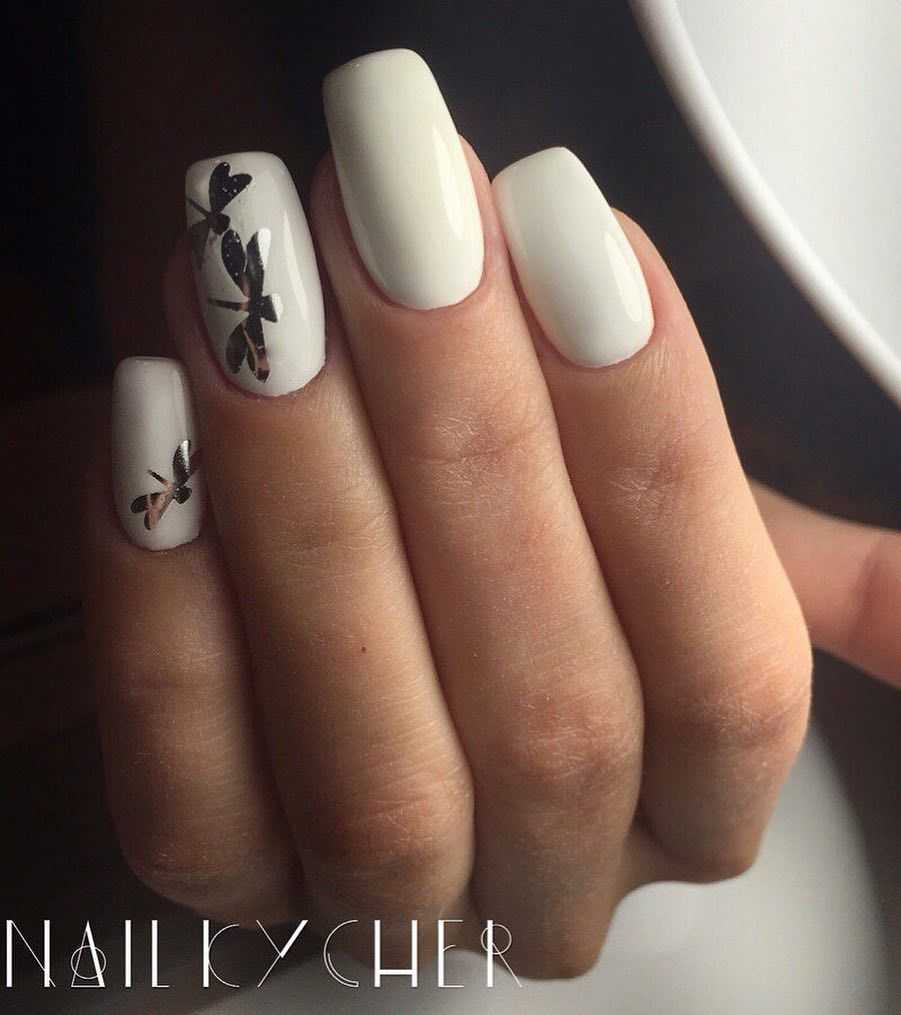 Обладательницы коротких ноготков хорошо знают, что для такой длины самым оптимальным вариантом являются светлые нежные оттенки. Белый цвет – отличное решение для декора коротких ноготков. Что касается техник, то рекомендуется покрывать ноготки однотонным маникюром, использовать акриловую пудру, стразы, бульонки, художественную роспись с флористикой и геометрией.