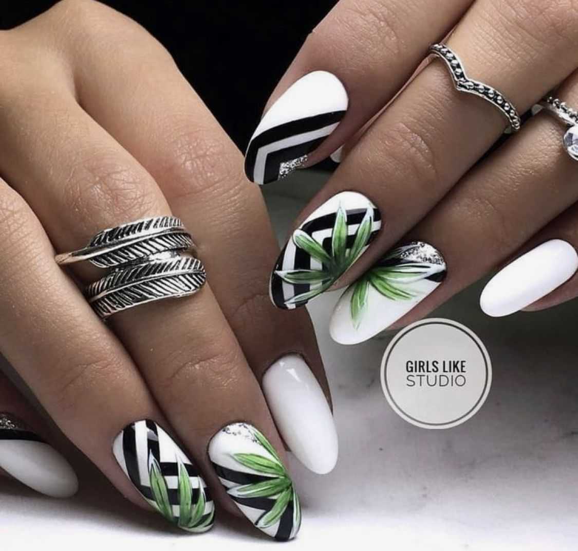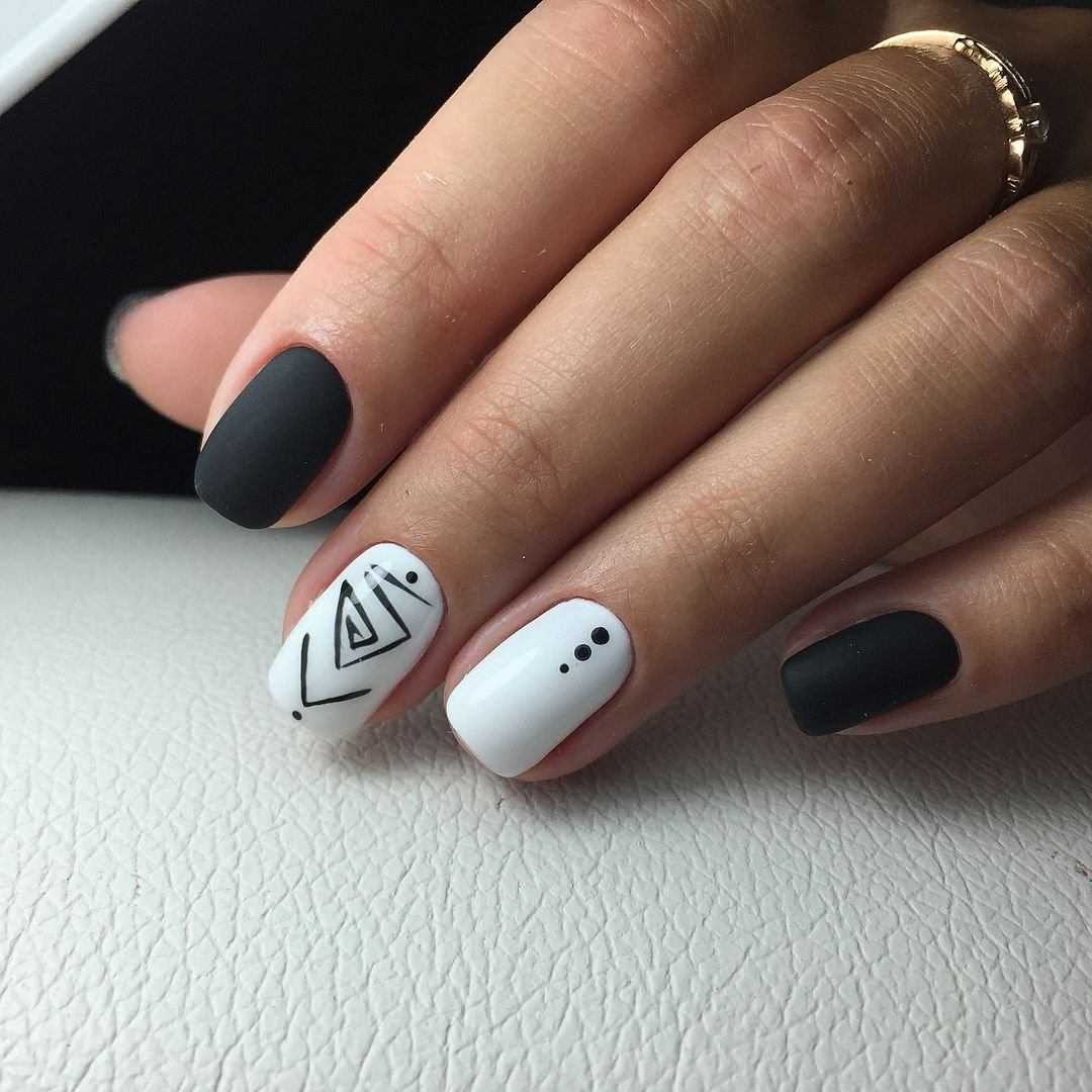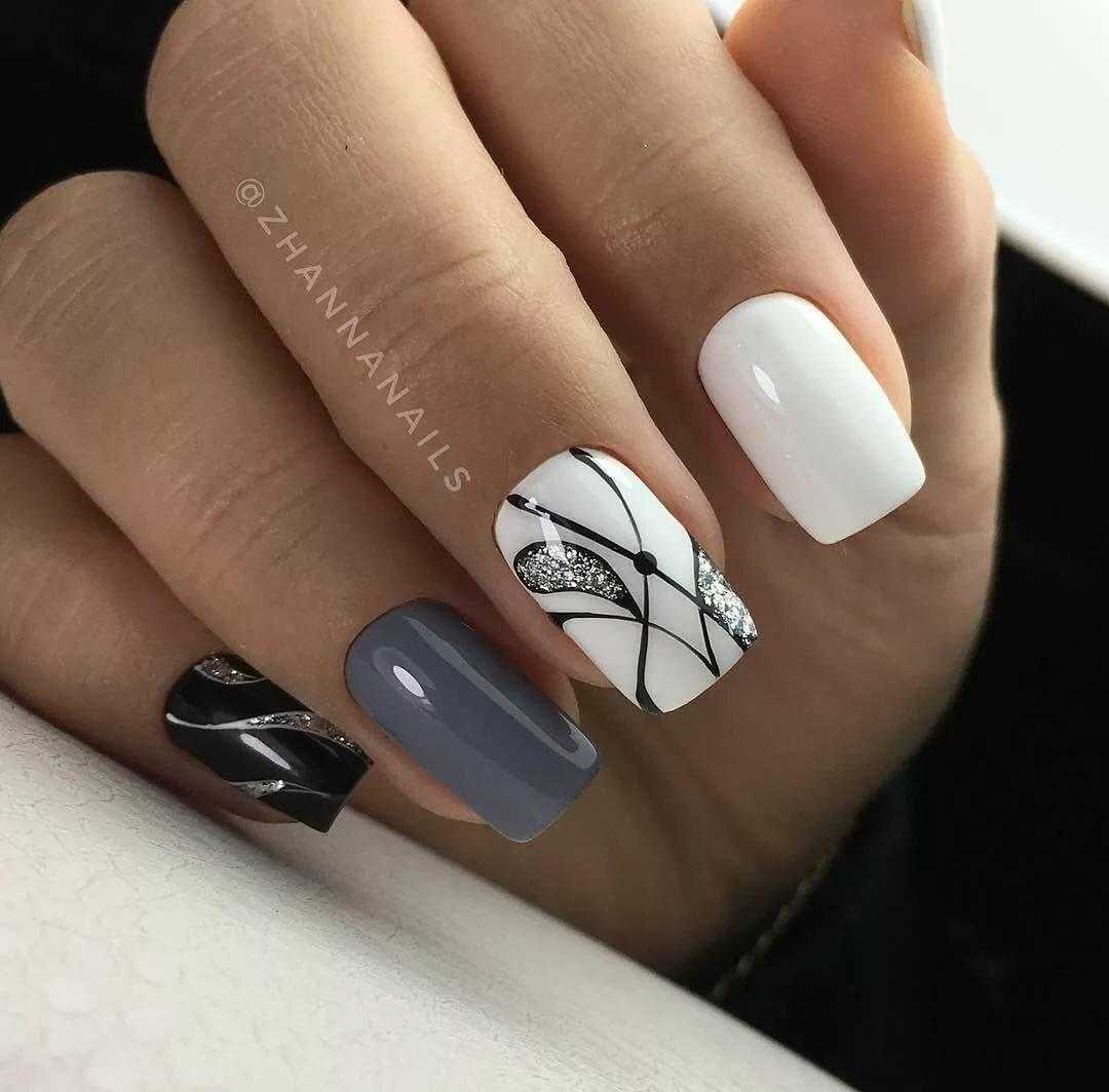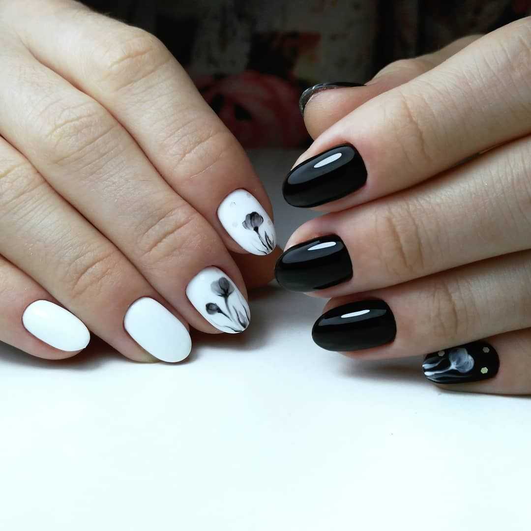 Маникюр черно-белый по форме и длине ногтей