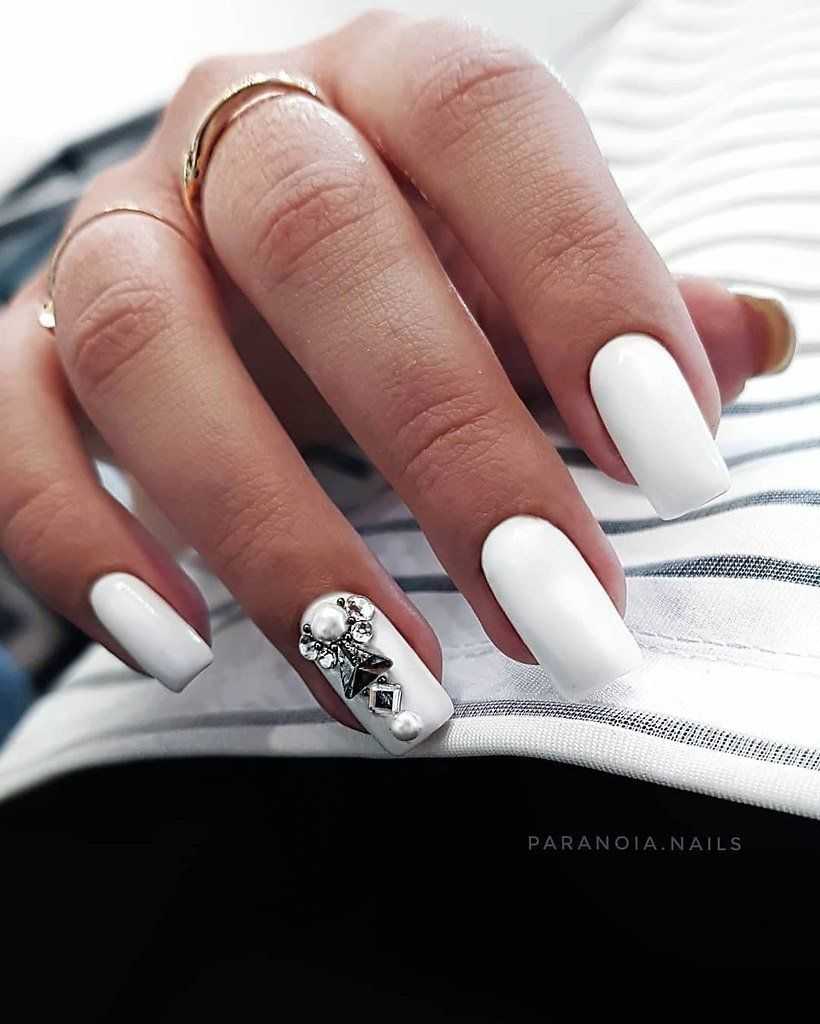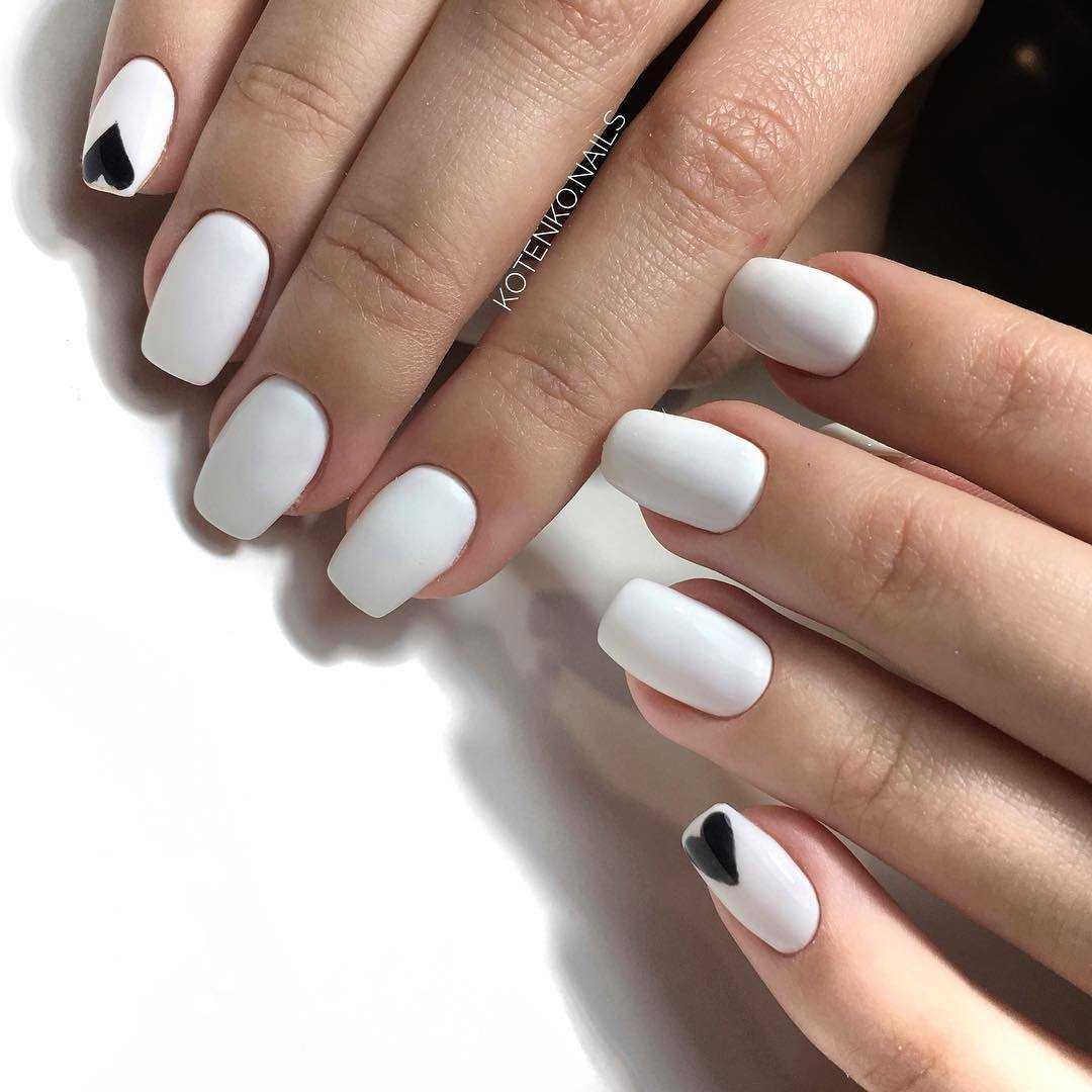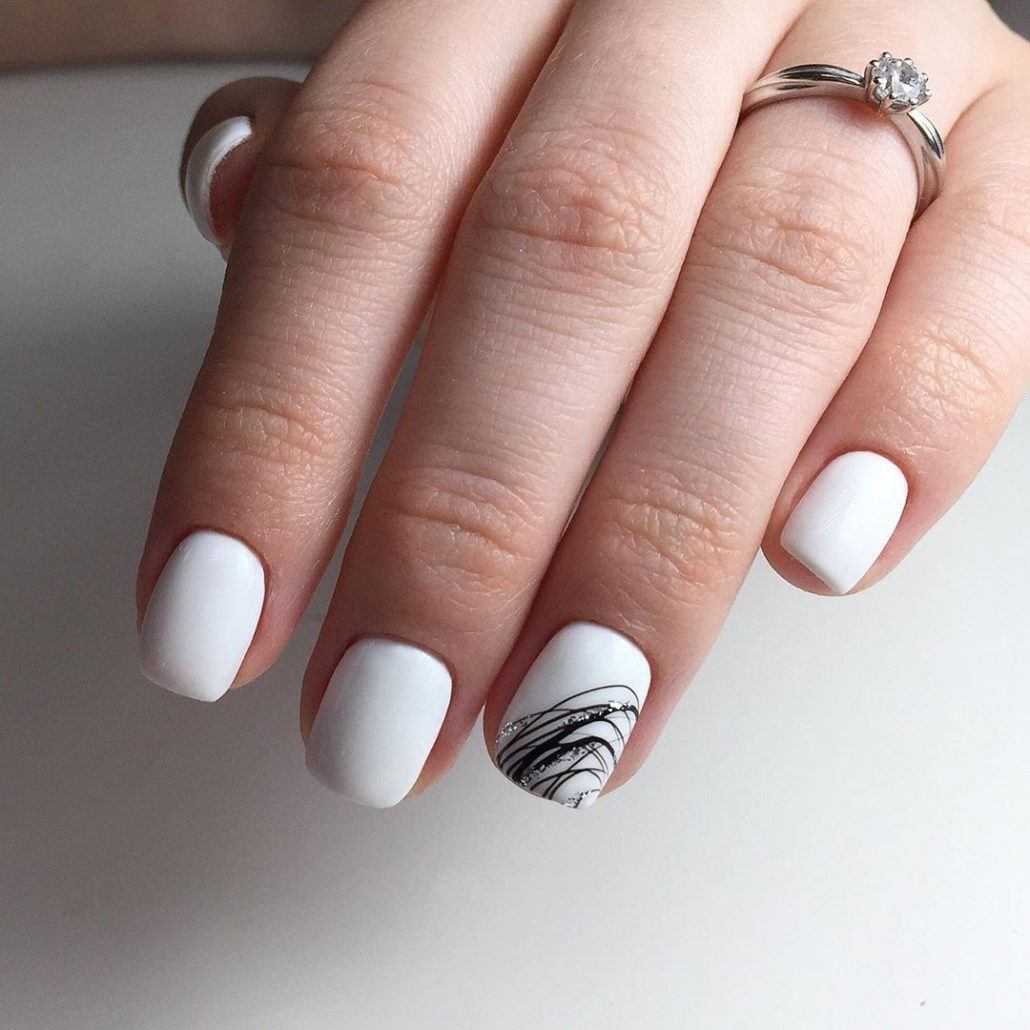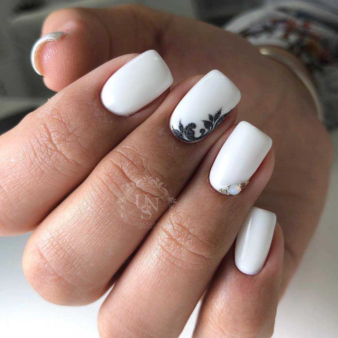 Если вы решили дополнить белый маникюр декором, то разместите его на 1-2 ноготках. Также не стоит выполнять на коротких ногтях ахроматические нейл-арты, где сочетаются черный и белый, красный и белый. На короткой длине такое сочетание не сможет по-настоящему раскрыться и показать себя.
