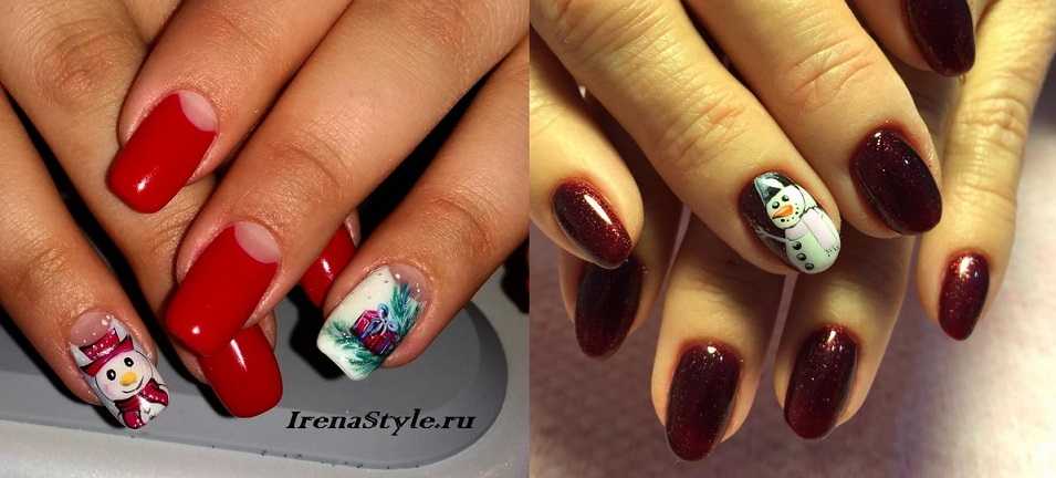 Здесь есть где разгуляться вашей фантазии или фантазии мастера. Вы можете выполнять на своих ноготках елочных игрушки, елки, снеговиков, дедов морозов и другую тематику Нового Года. Такие рисунки всегда яркие, нарядные, ведь они несут тематический характер для празднования Нового Года.