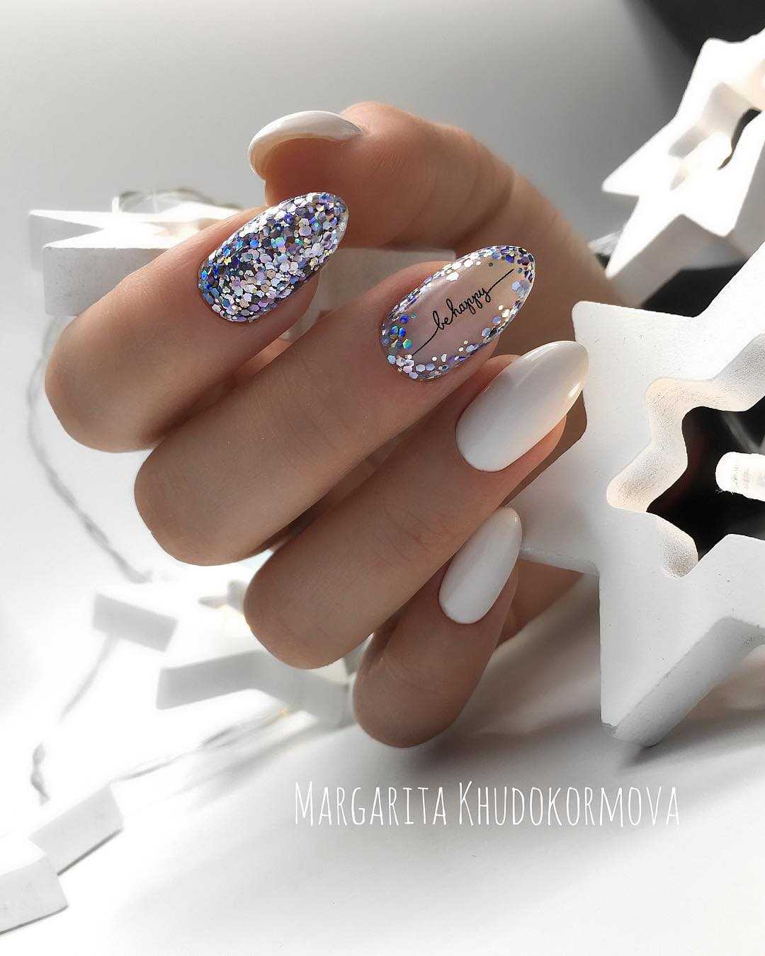 Даже если вы подберете классическую, однотонную покраску ногтей, то именно глиттер оживит его и сделает праздничным.