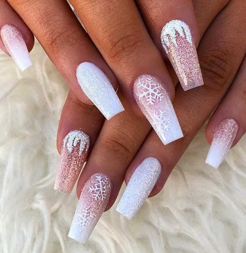 Приветствуется френч, лунный дизайн, геометрический минимализм в черных, синих, пастельных тонах, а также вязаные узоры, глиттер и хлопья.
