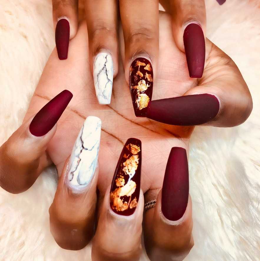 Фольга бросается в глаза, но более благородна, чем натирка. Можно использовать самые тонкие металлические листья — оторванную фольгу или горшки. Последний может продаваться в виде хлопьев, но его несложно нанести самостоятельно. Выделите отдельные зоны, французские улыбки, отверстия или дополните мраморный рисунок с помощью фольги.