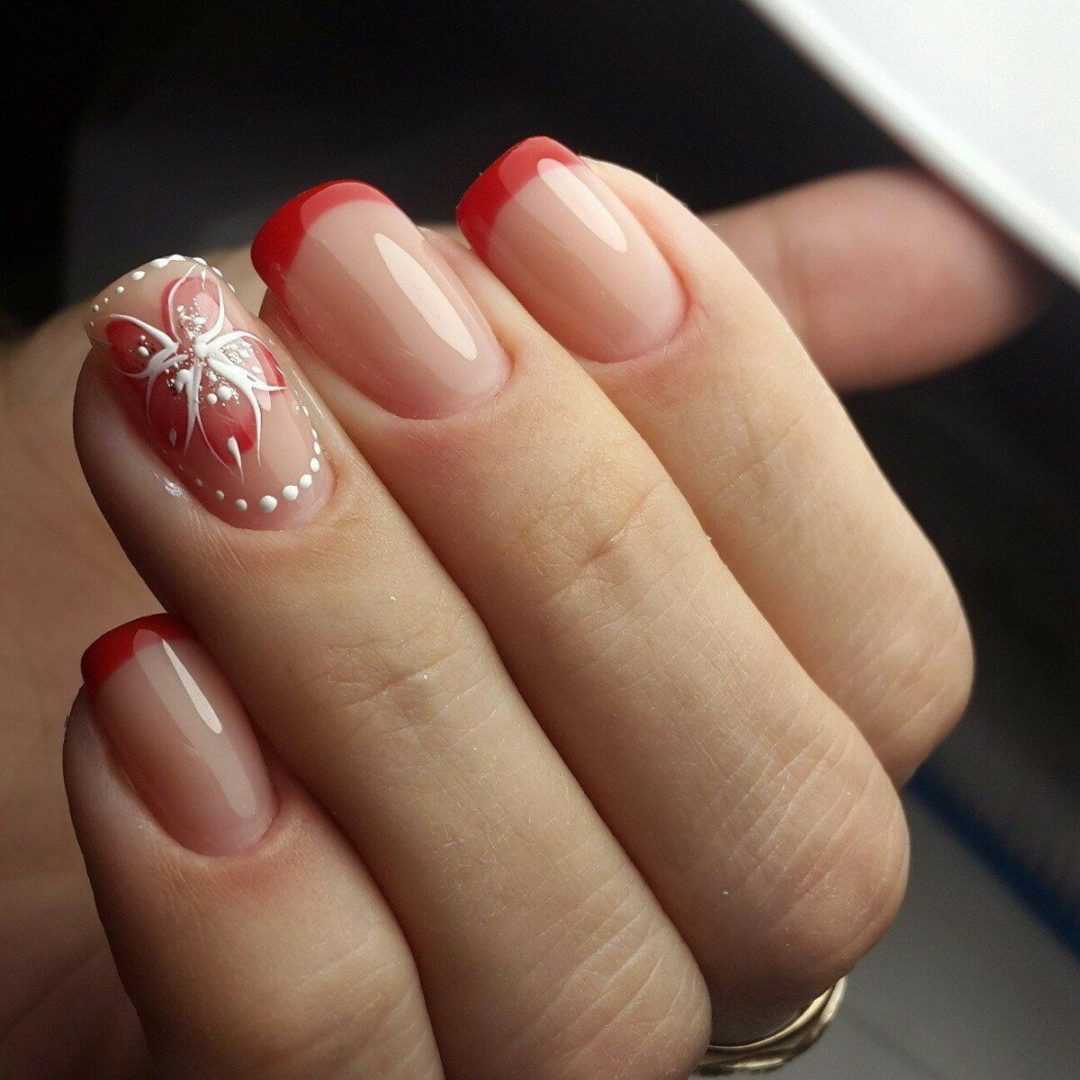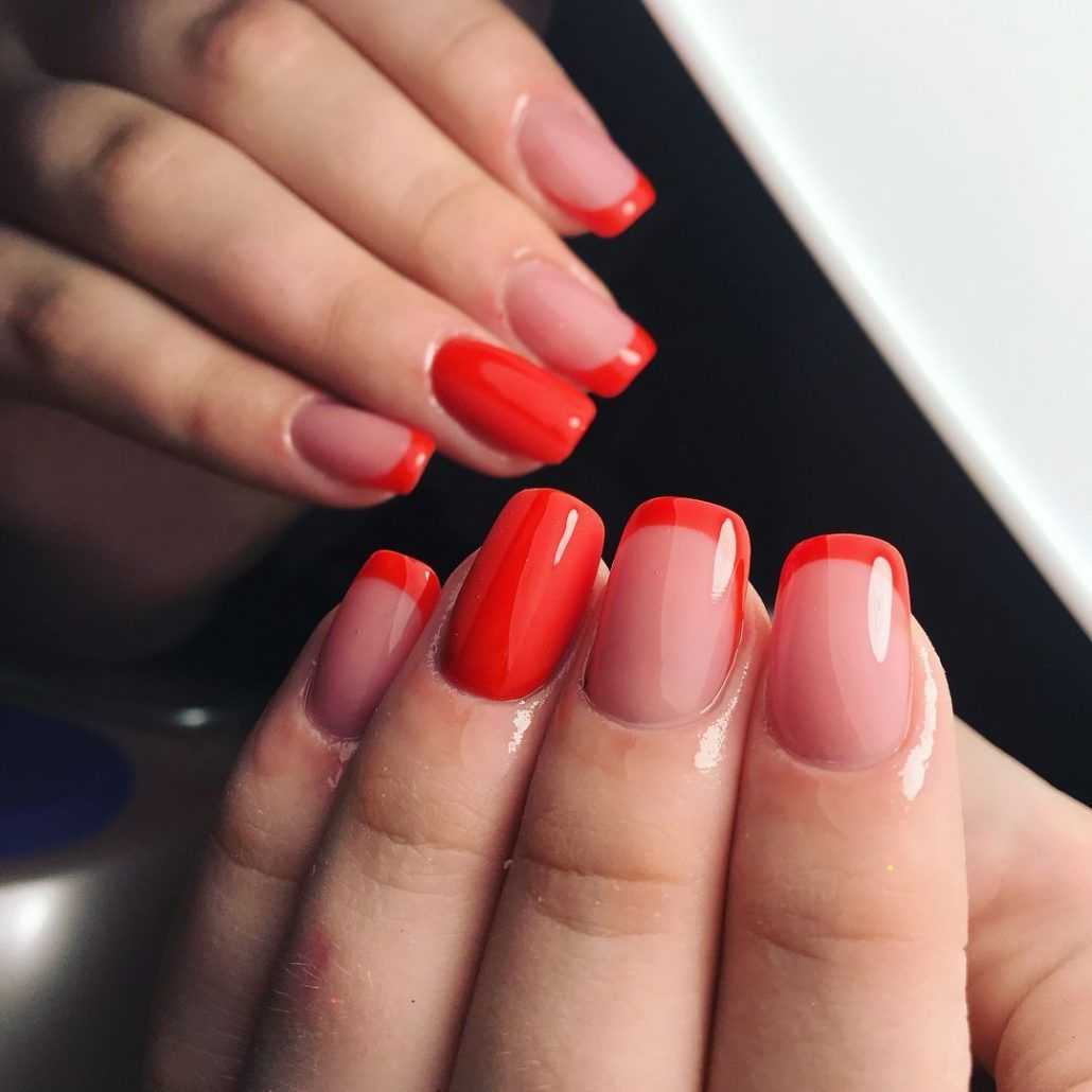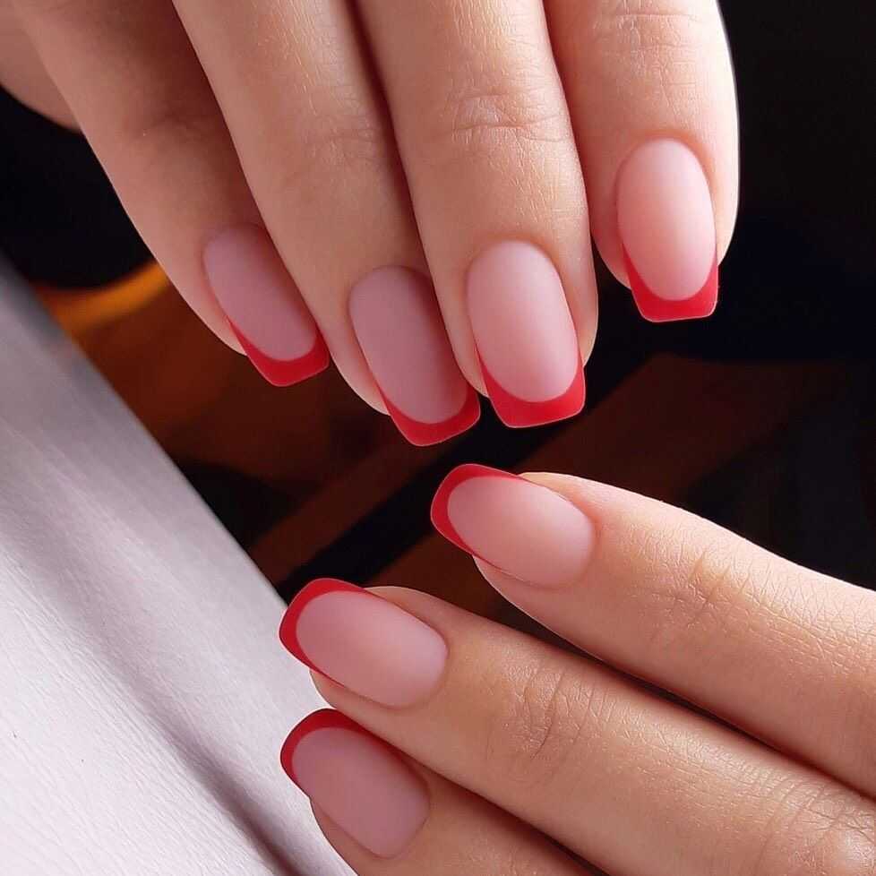 Красный френч на коротких квадратных и овальных ногтях: новинки 2023-2024