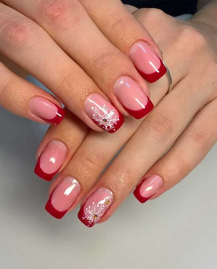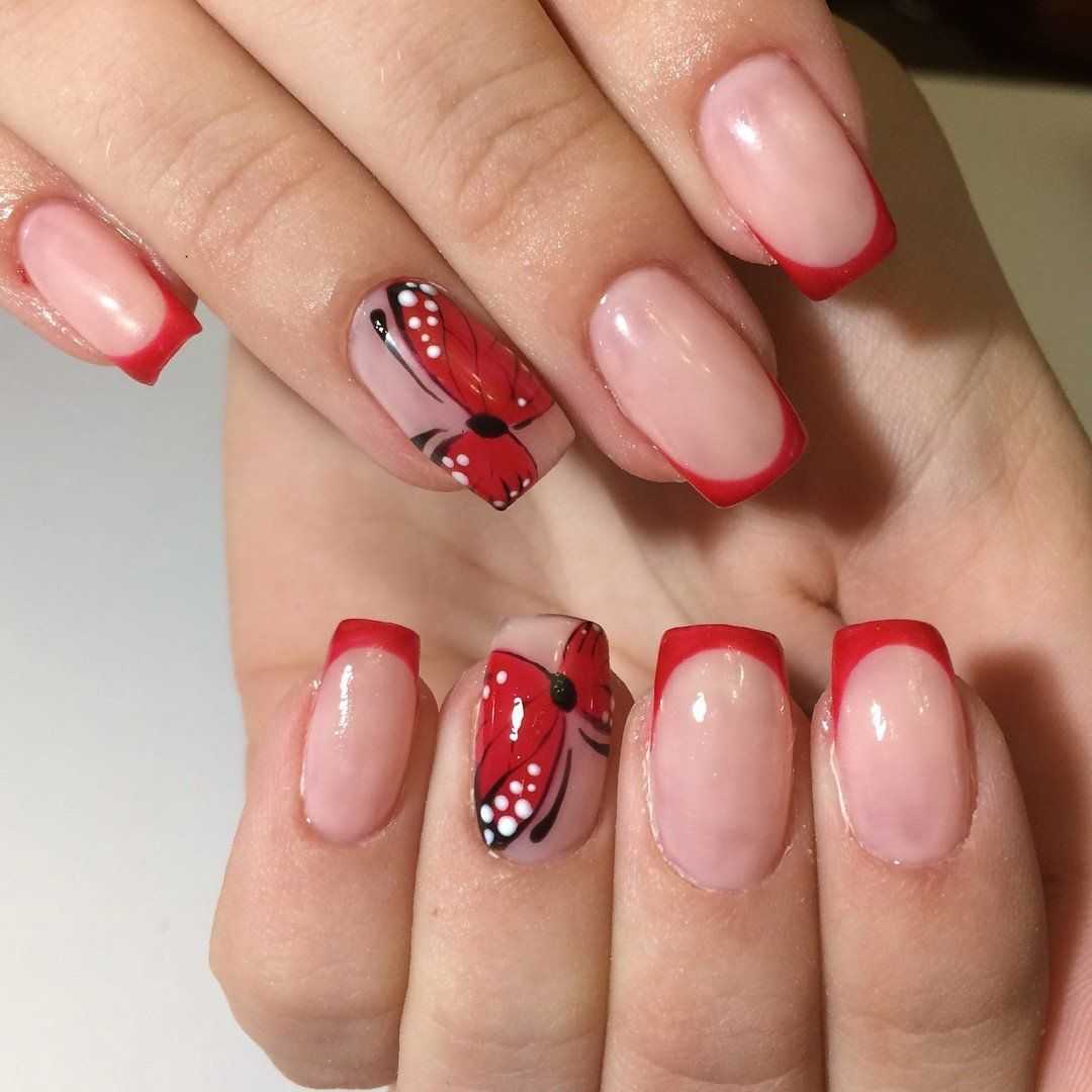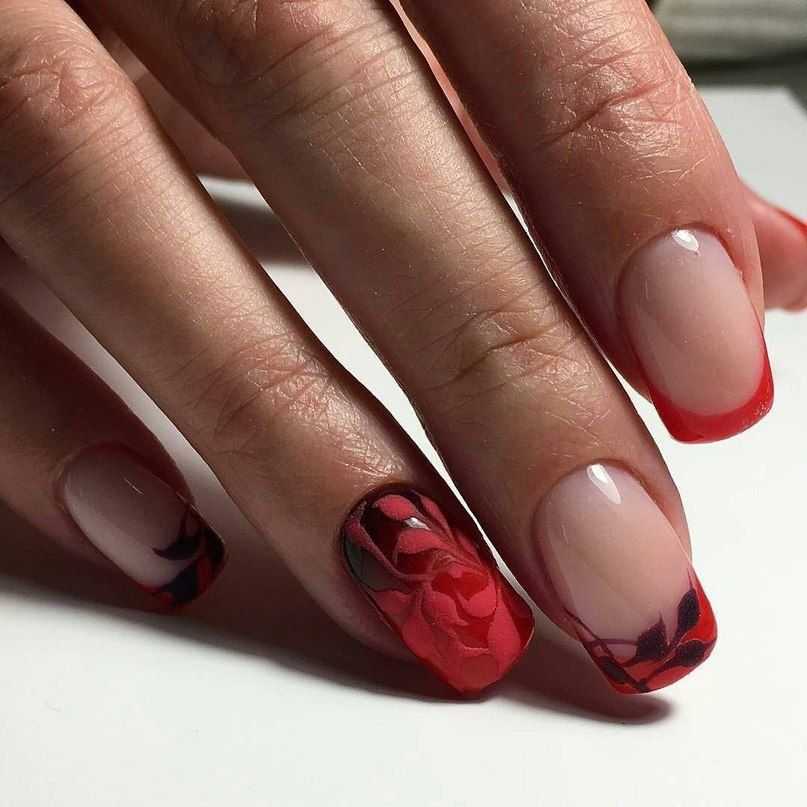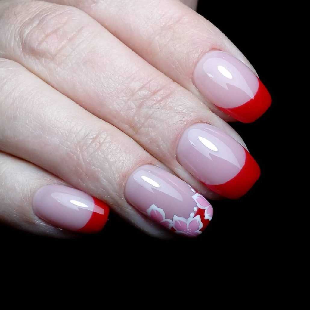 Красный френч на коротких квадратных и овальных ногтях: новинки 2023-2024