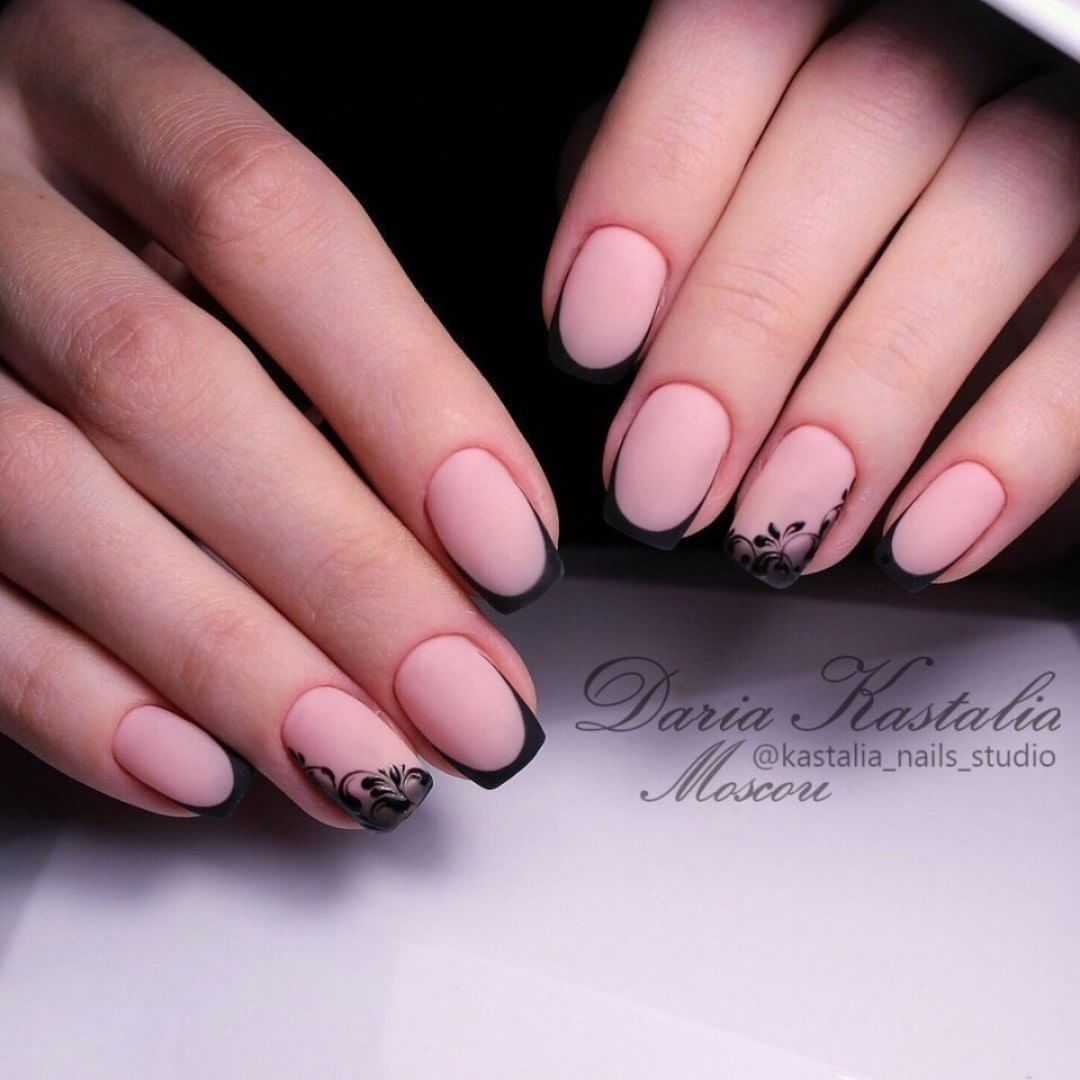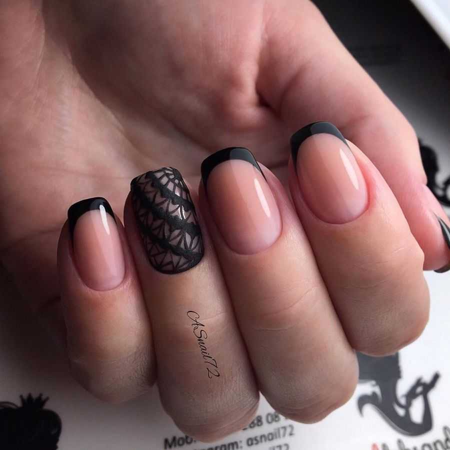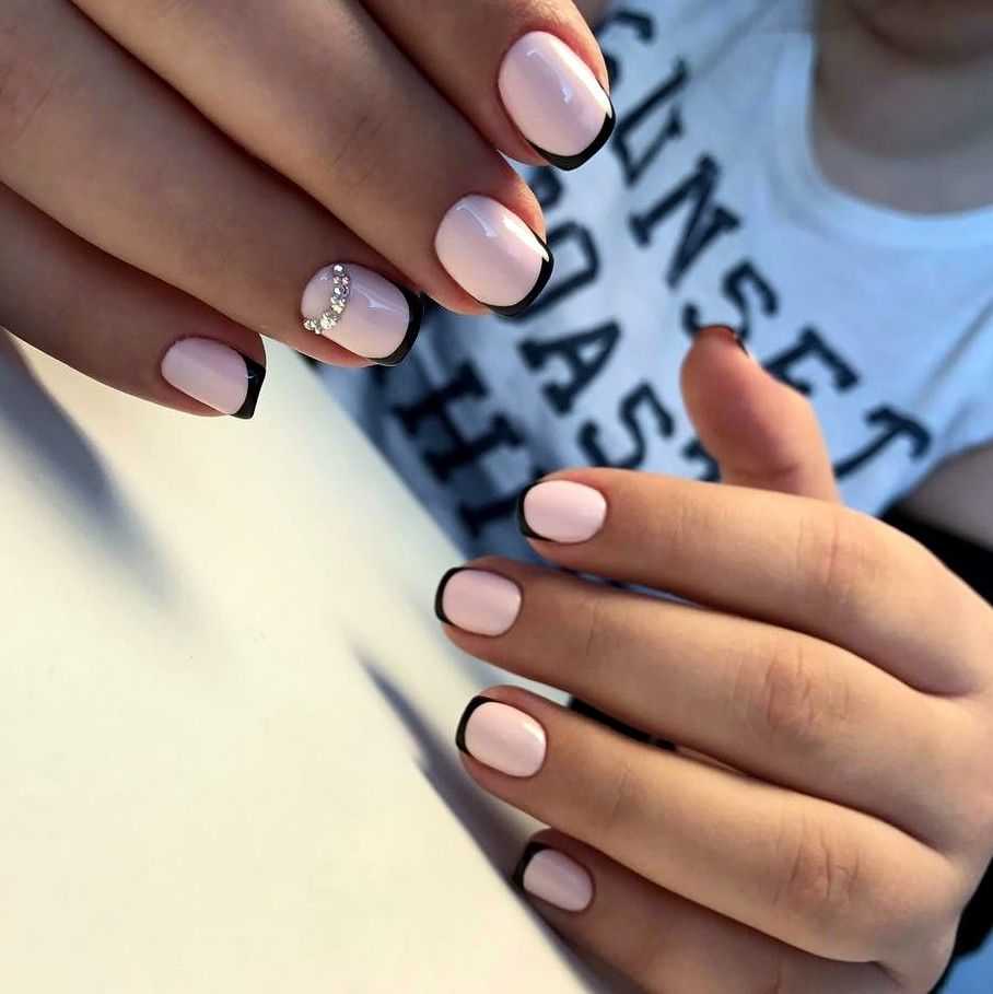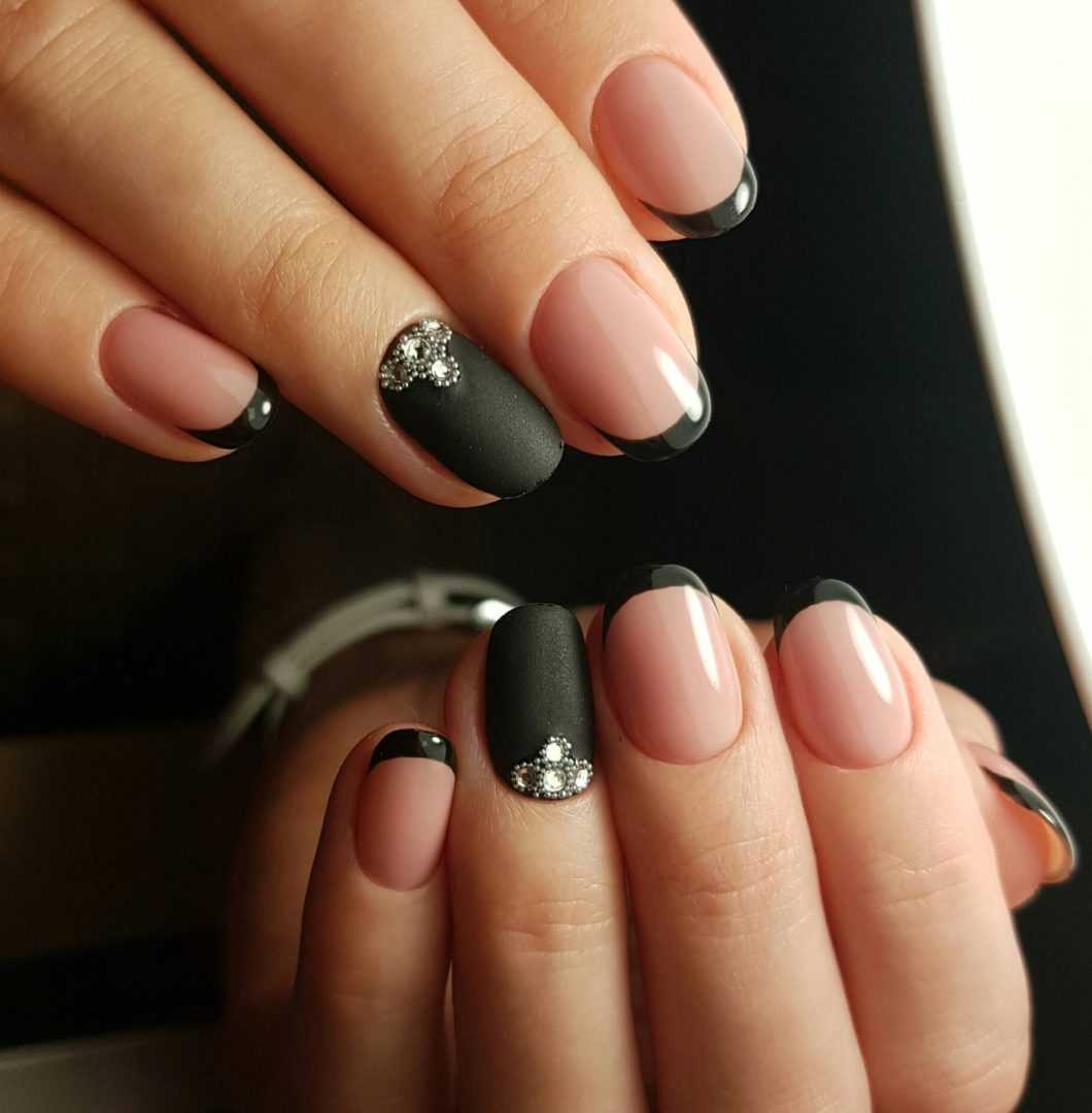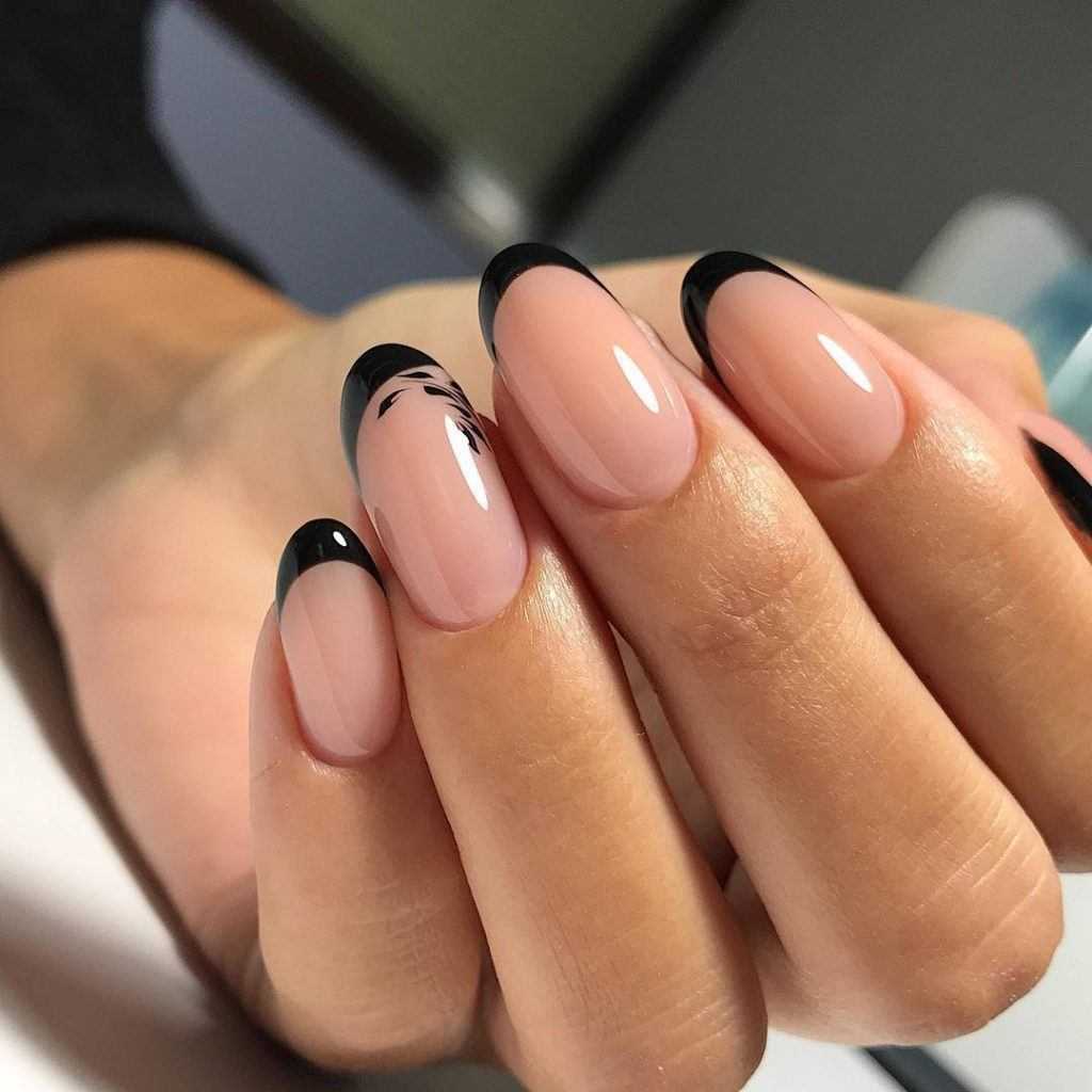 Черный френч на коротких квадратных и овальных ногтях: идеи 2023-2024