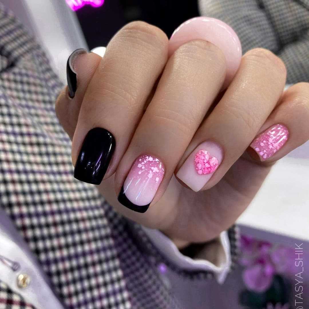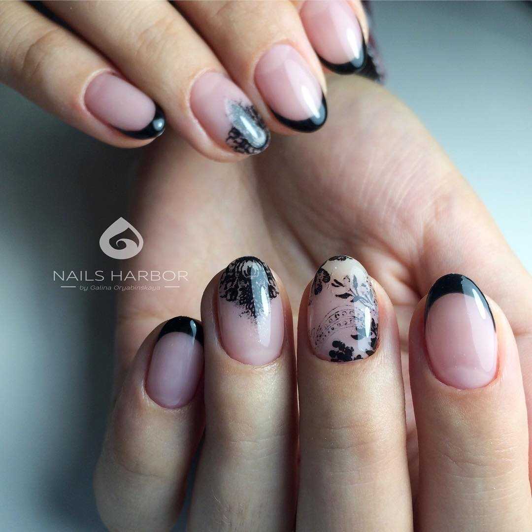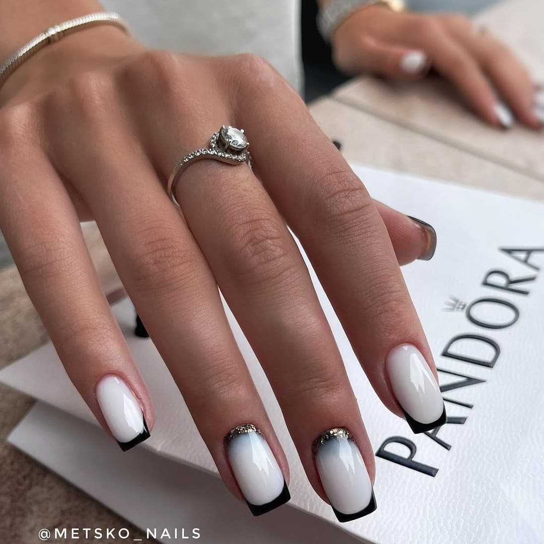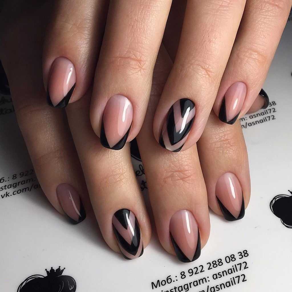 Черный френч на коротких квадратных и овальных ногтях: идеи 2023-2024