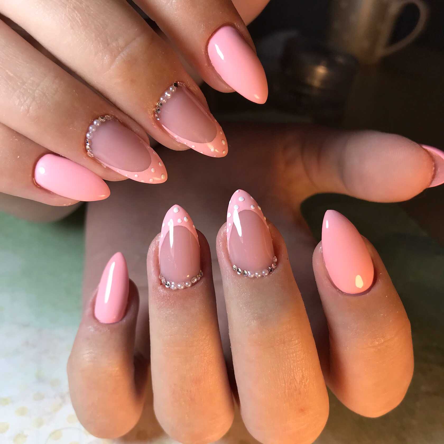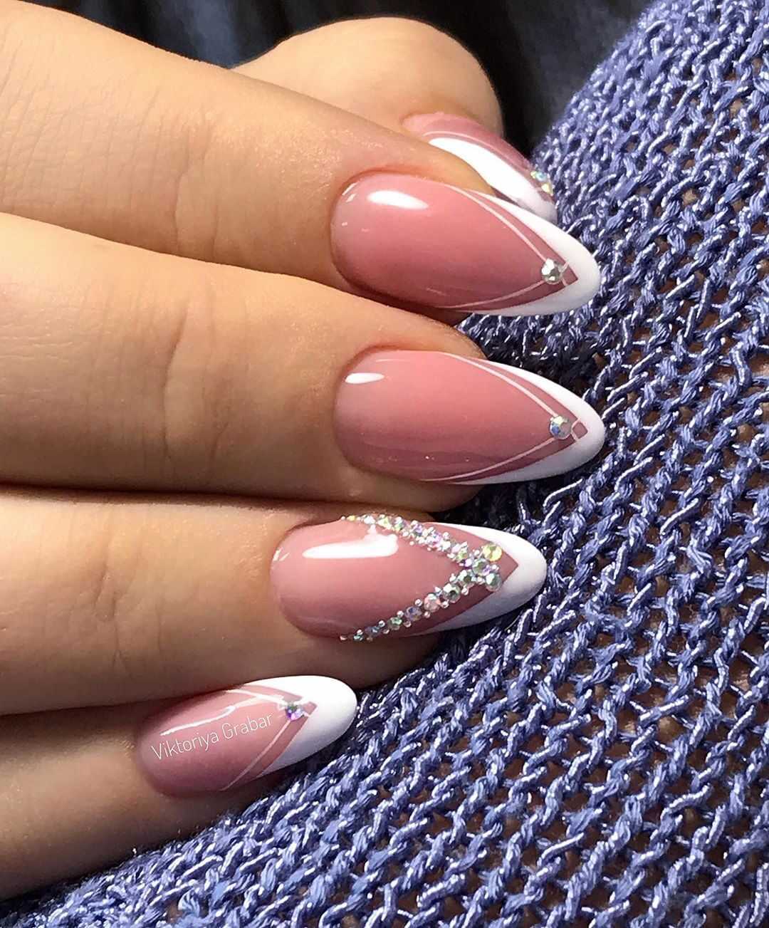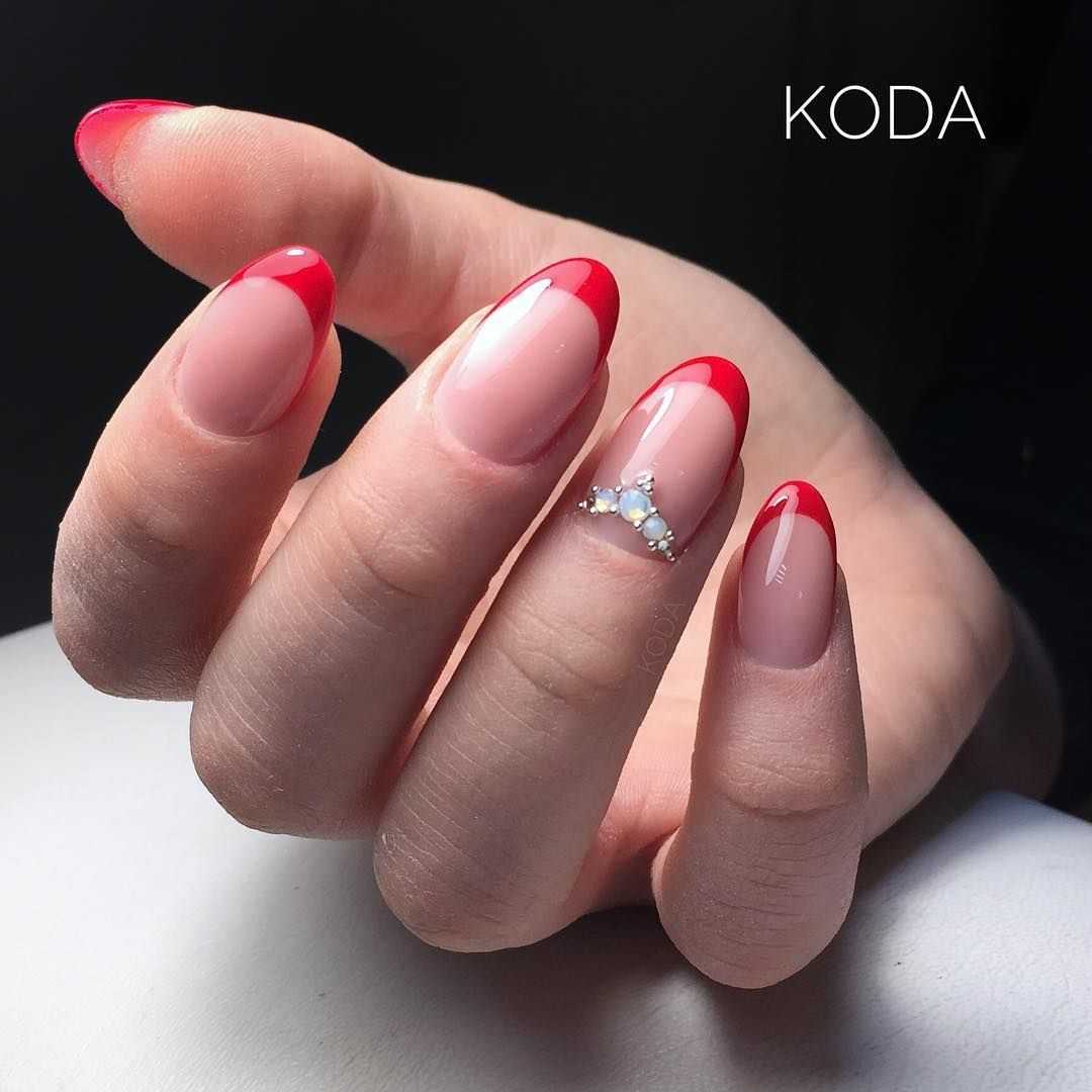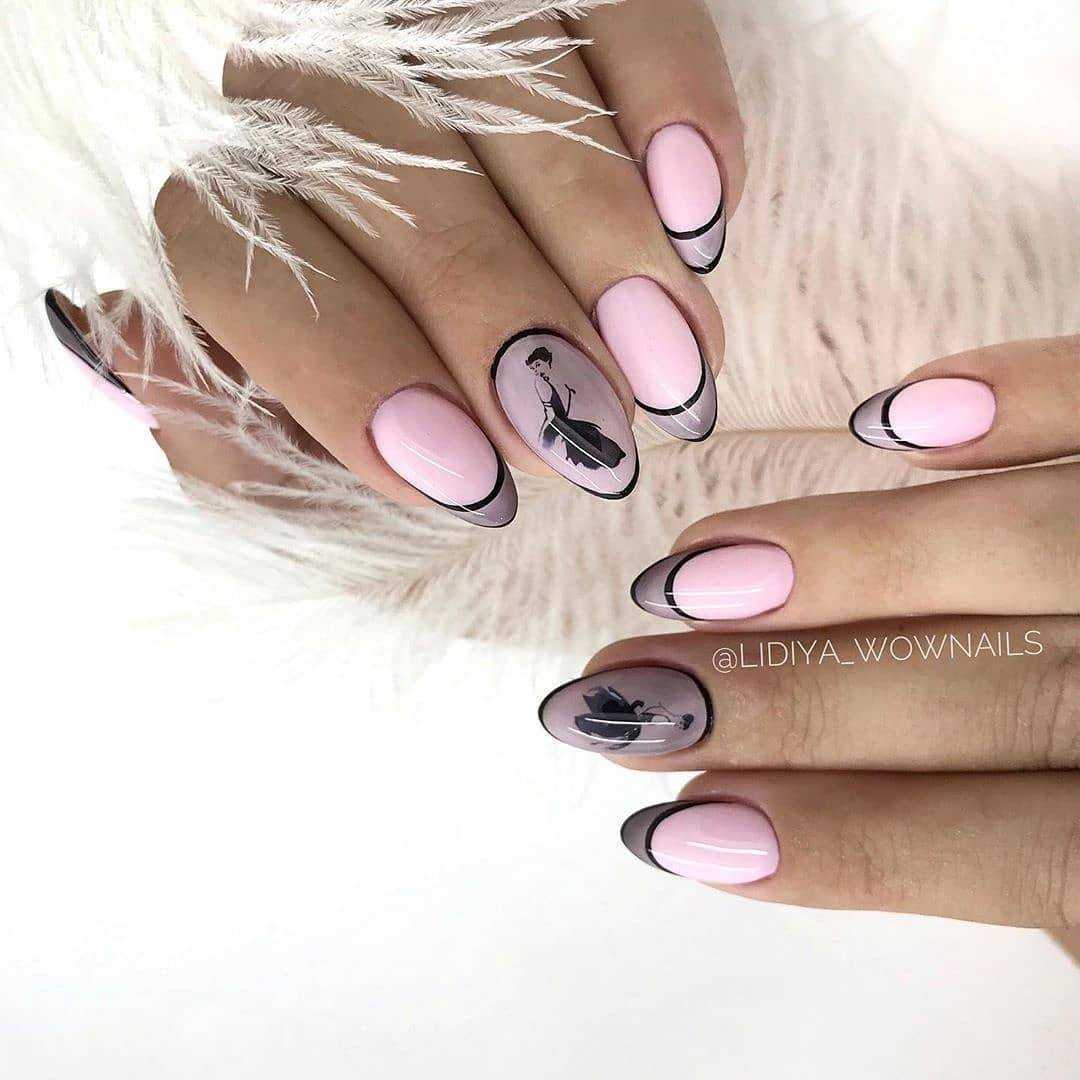 Форма миндаль или овал — одна из самых востребованных среди модниц. Это женственность и нежность. Для миндальной формы больше всего подходит классический вариант каемки. А вот дизайн может быть практически любым.