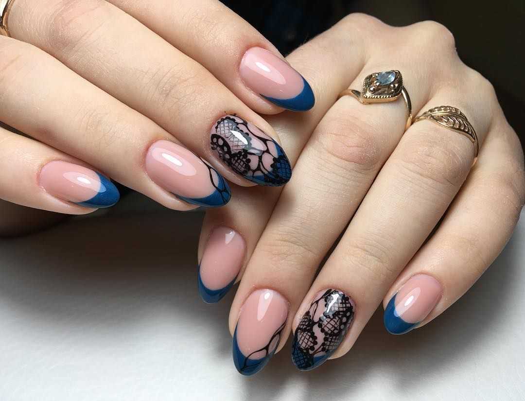 Золотой френч на ногтях с кружевом: фото 2019