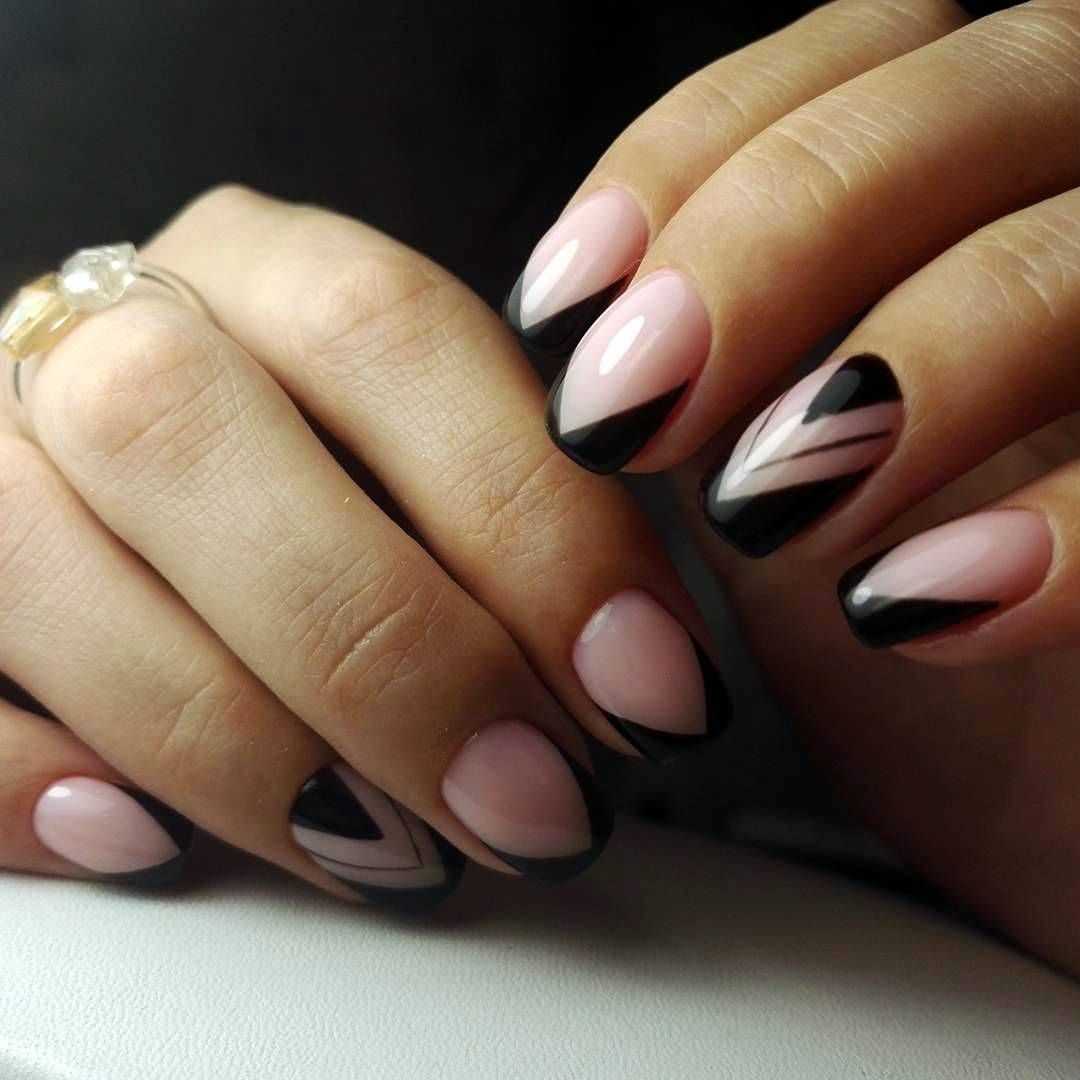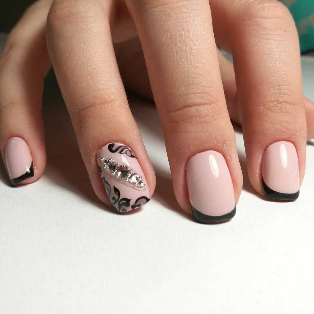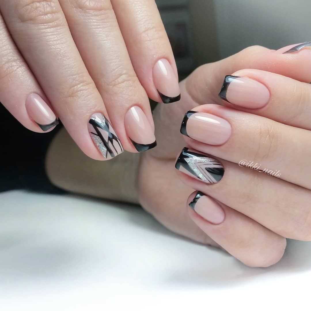 Рекомендуется выбирать дизайн с осторожностью, чтобы он не был вульгарным. Актуален обычный классический вариант френча с темной — глянцевой или матовой — каймой.Если хотите сделать нейл арт индивидуальным, добавьте минималистичный рисунок — полоски, абстракцию и др