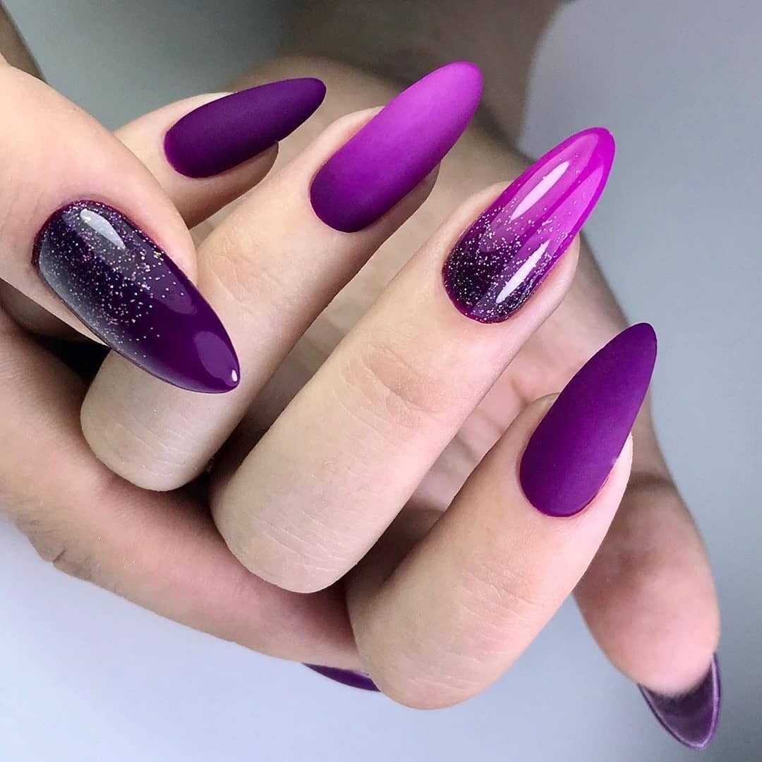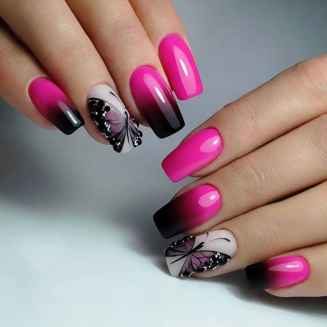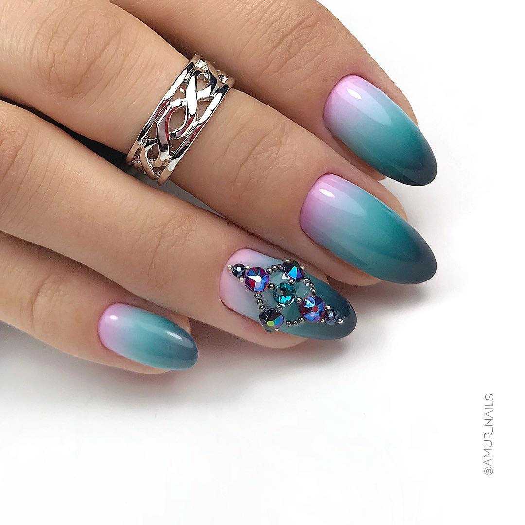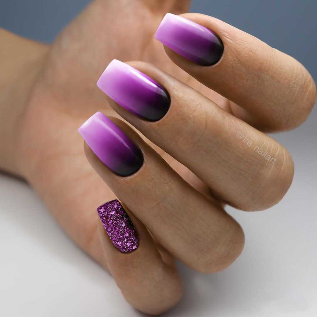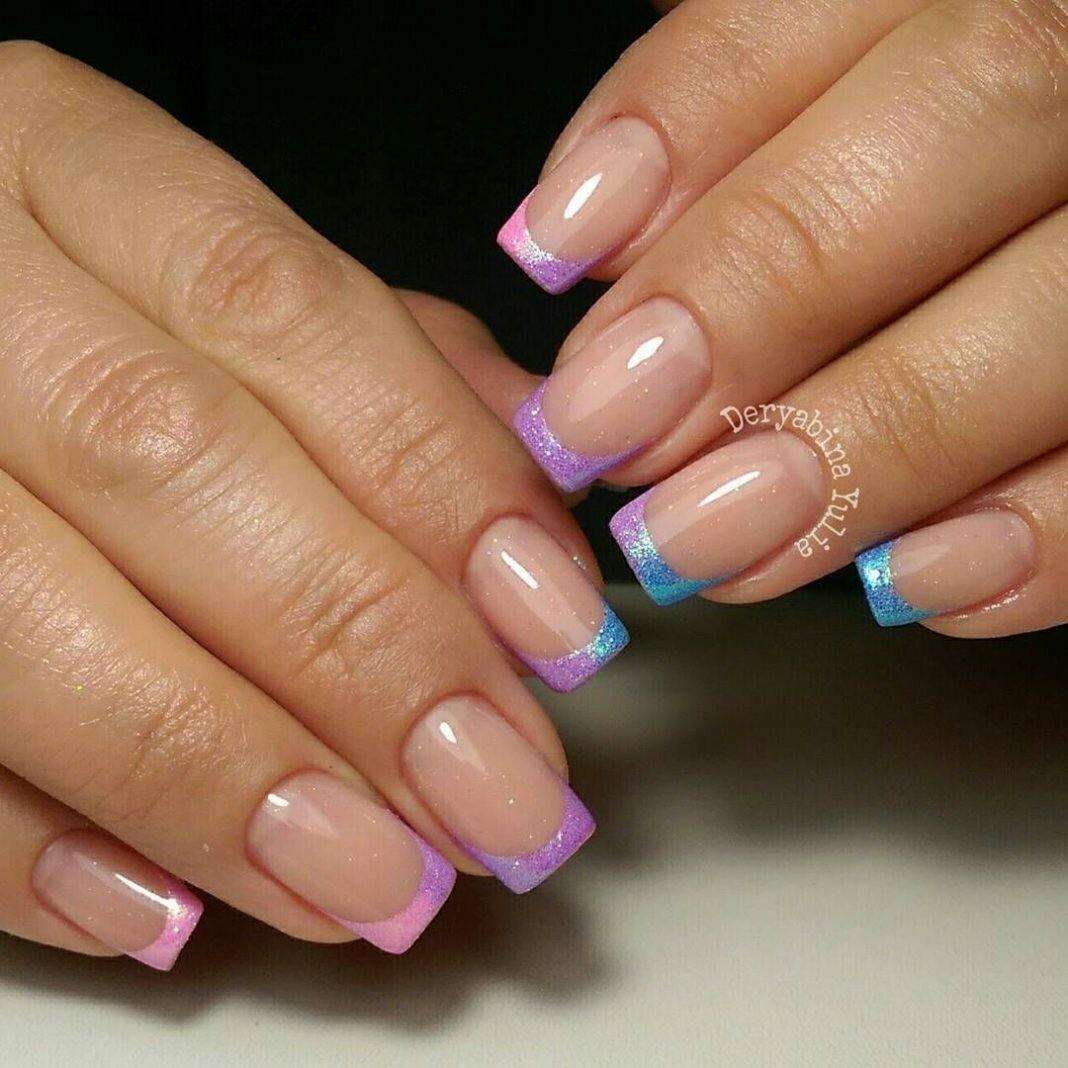 - градиентный маникюр — это плавный переход из одного цвета в другой. В этом случае можно добавить и третий цвет, чтобы маникюр смотрелся интереснее;