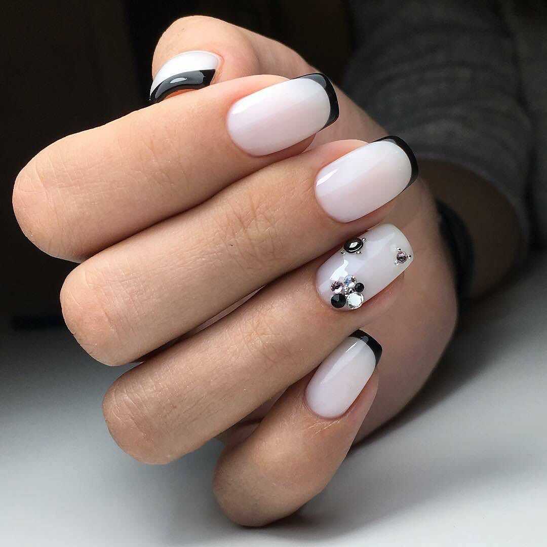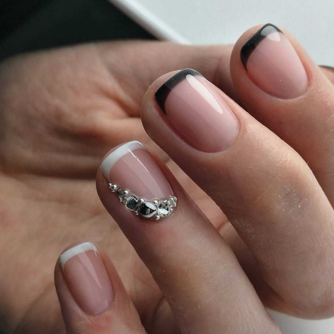 Это, наверное, самая элегантная комбинация в нейл арте. Такой вариант подойдет для взрослых и стильных дам, будет отлично сочетаться с любой одеждой — от офисного костюма до джинсов и кроссовок.