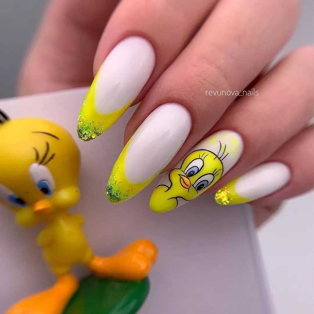Стоит уделить особое внимание дизайну с заострённым краем. На квадратных ногтях это смотрится не так оригинально, зато на овальных это станет потрясающим решением