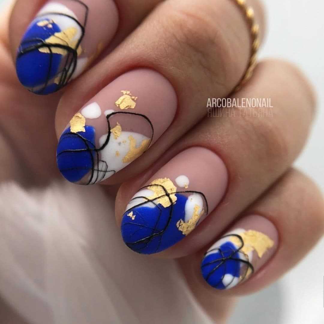 - чёрный мраморный маникюр с нотками золота смотрится стильно и свежо;